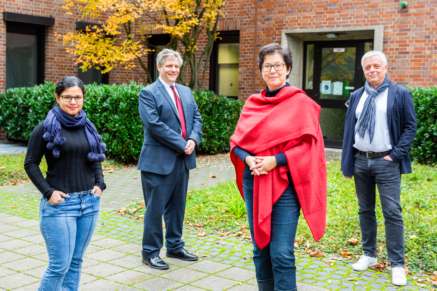 New fellows Carla R. Almeida and Ryan Nutting were welcomed by coordinator Sabine Voßkamp and the KWI’s managing director Armin Flender (LTR). KWI, Picture: eventfotograf.in
