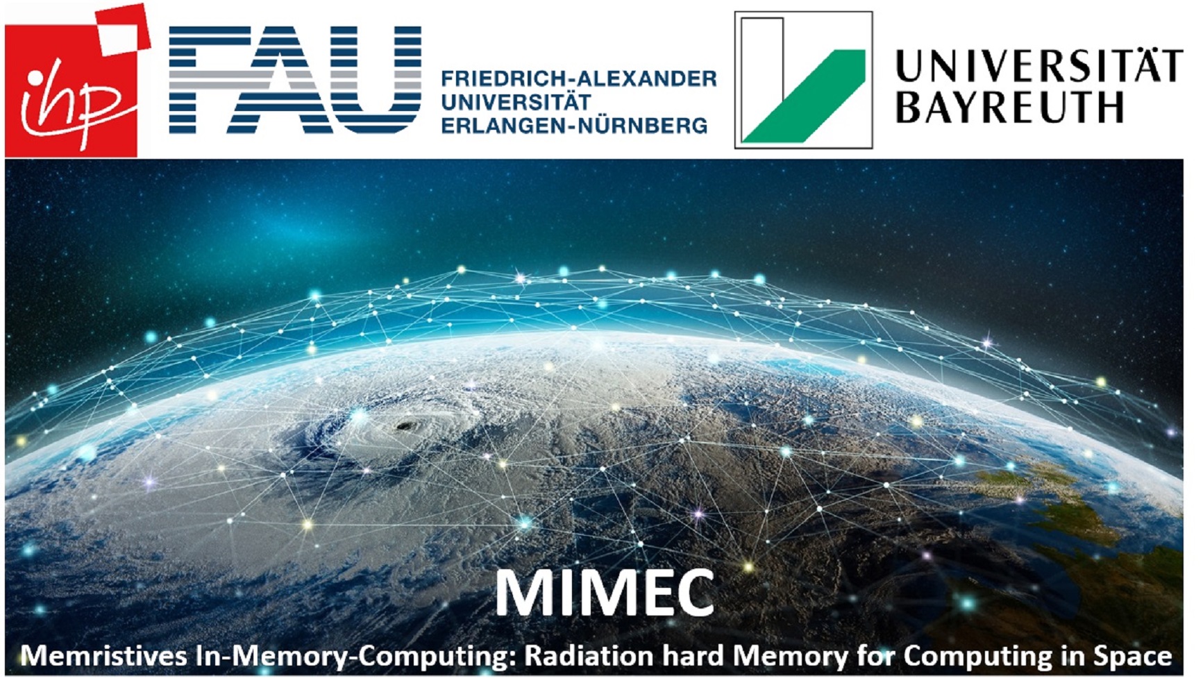 Mit dem Ziel, einen Teil der Verarbeitungslast in den RRAM-Speicher im Sinne eines intelligenten In-Memory-Computing-Konzepts zu verschieben, startet das gemeinsame DFG Projekt: „Memristives In-Memory-Computing: Radiation hard Memory for Computing in Space (MIMEC)“ mit der Universität Bayreuth, der Universität Erlangen-Nürnberg und dem Leibniz-Institut für innovative Mikroelektronik (IHP), welches im Rahmen DFG Schwerpunktprogramms „Memristive Bauelemente für intelligente technische Systeme“ eingeworben wurde. Dabei sollen In-Memory-Operationen in den strahlungsharten Sense Verstärkern eines RRAM-Arrays durch Signalauswertung und direkte Integration von memristiven RRAM-Zellen in den Verarbeitungsschritt überführt werden. Um die Funktionalität der strahlungsharten Systemarchitektur zu überprüfen, wird auf intensive Simulationsarbeiten gesetzt. In der Simulationsumgebung wird ein neues Modell für memristive Bauelemente zur Untersuchung der gesamten strahlungsharten Systemarchitektur unter Verwendung von In-Memory-Computing eingesetzt.