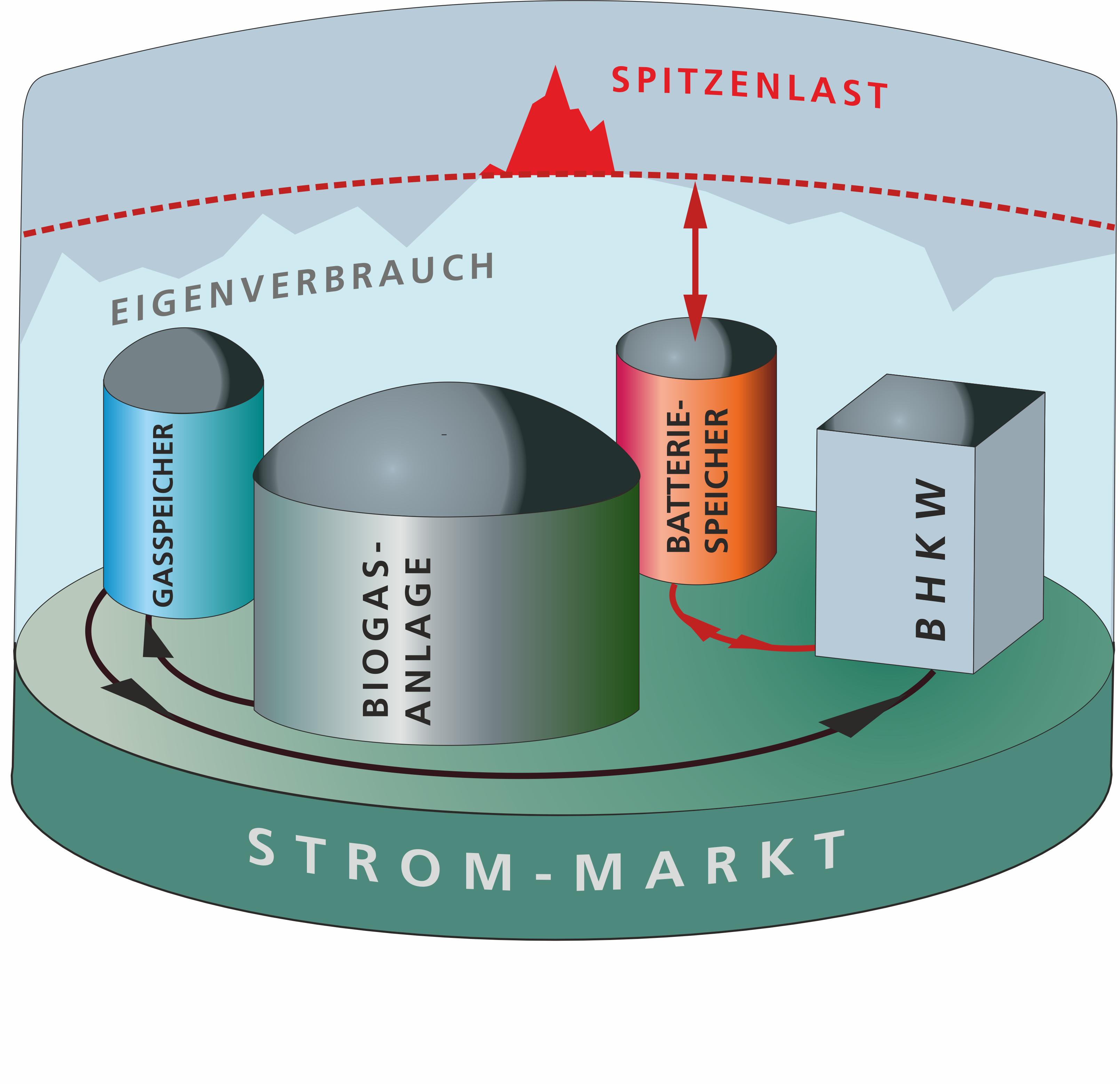 Beide Formen der Energiespeicherung unterscheiden sich in ihren technischen und ökonomischen Eigenschaften und damit in ihren Einsatzfeldern. Batterien können kurzfristig sehr hohe Leistungen zur Verfügung stellen, während Biogasanlagen mit einer höheren mechanischen Trägheit versehen sind, dafür aber über einen im Vergleich zu Batterien längeren Zeitraum Energie speichern und bedarfsgerecht abrufen können. Systeme mit einer gezielten und aufeinander abgestimmten Kombination aus flexibel betriebener Biogasanlage und einem hochdynamischen Batteriespeicher können nicht nur die bisher adressierten Einsatzfelder bedienen – wie die Einspeisung nach EEG oder die Vermarktung über Direktanbieter – sondern auch den Weg für neue Anwendungsfelder freimachen.