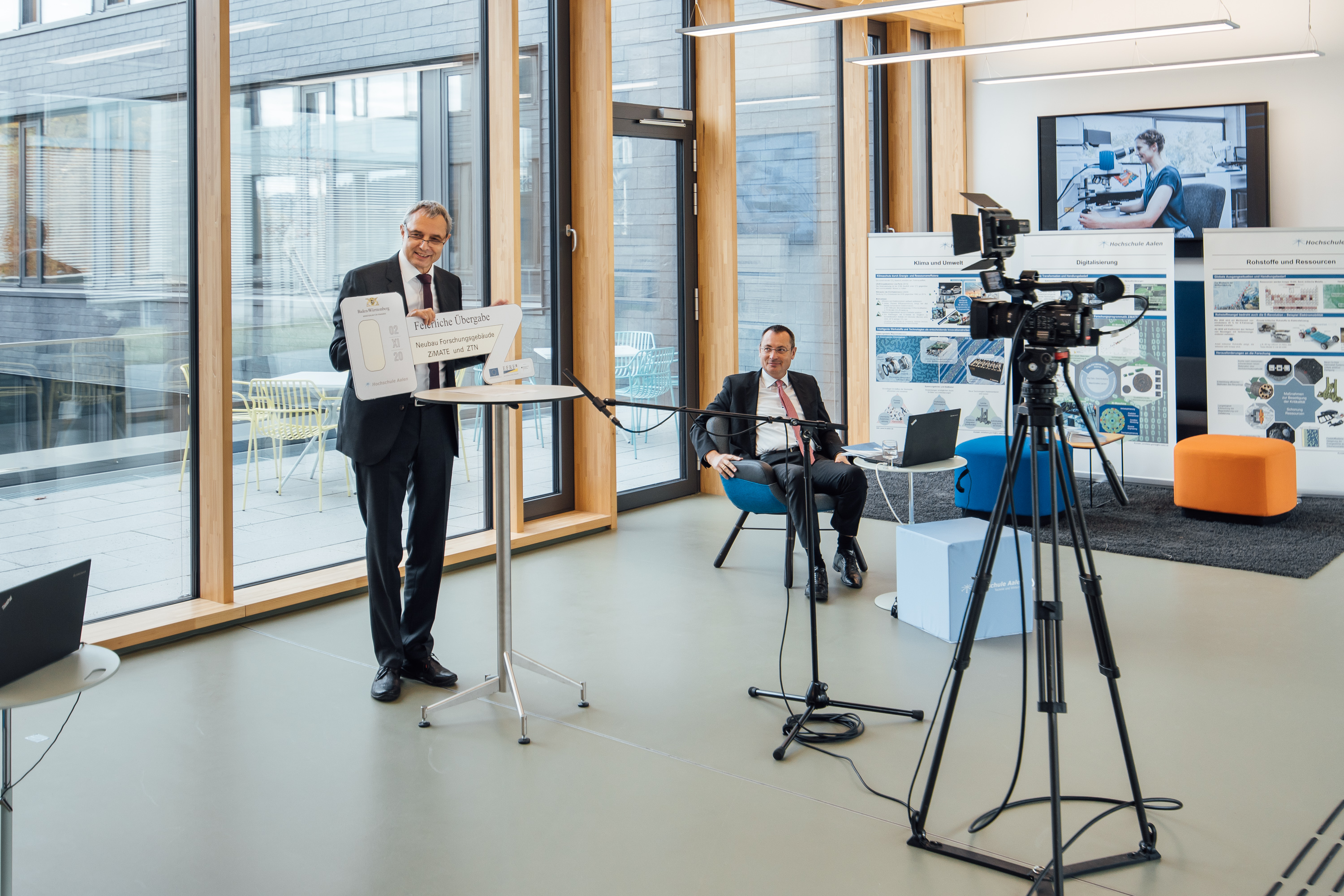 Hier schlägt ab sofort das Forscherherz der Region: Rund drei Jahre nach dem Spatenstich öffnen die beiden neuen Forschungsgebäude der Hochschule Aalen ihre Pforten. Das Zentrum innovativer Materialien und Technologien für effiziente elektrische Energiewandler-Maschinen (ZiMATE) und das Zentrum Technik für Nachhaltigkeit (ZTN) bieten auf 3.200 Quadratmetern exzellente Rahmenbedingungen für die Weiterentwicklung der Forschung von Hochschule und Region. Die beiden neuen Gebäude mit einem Investitionsvolumen von über 26 Millionen Euro wurden Corona-bedingt im Rahmen eines Online-Festakts eröffnet.