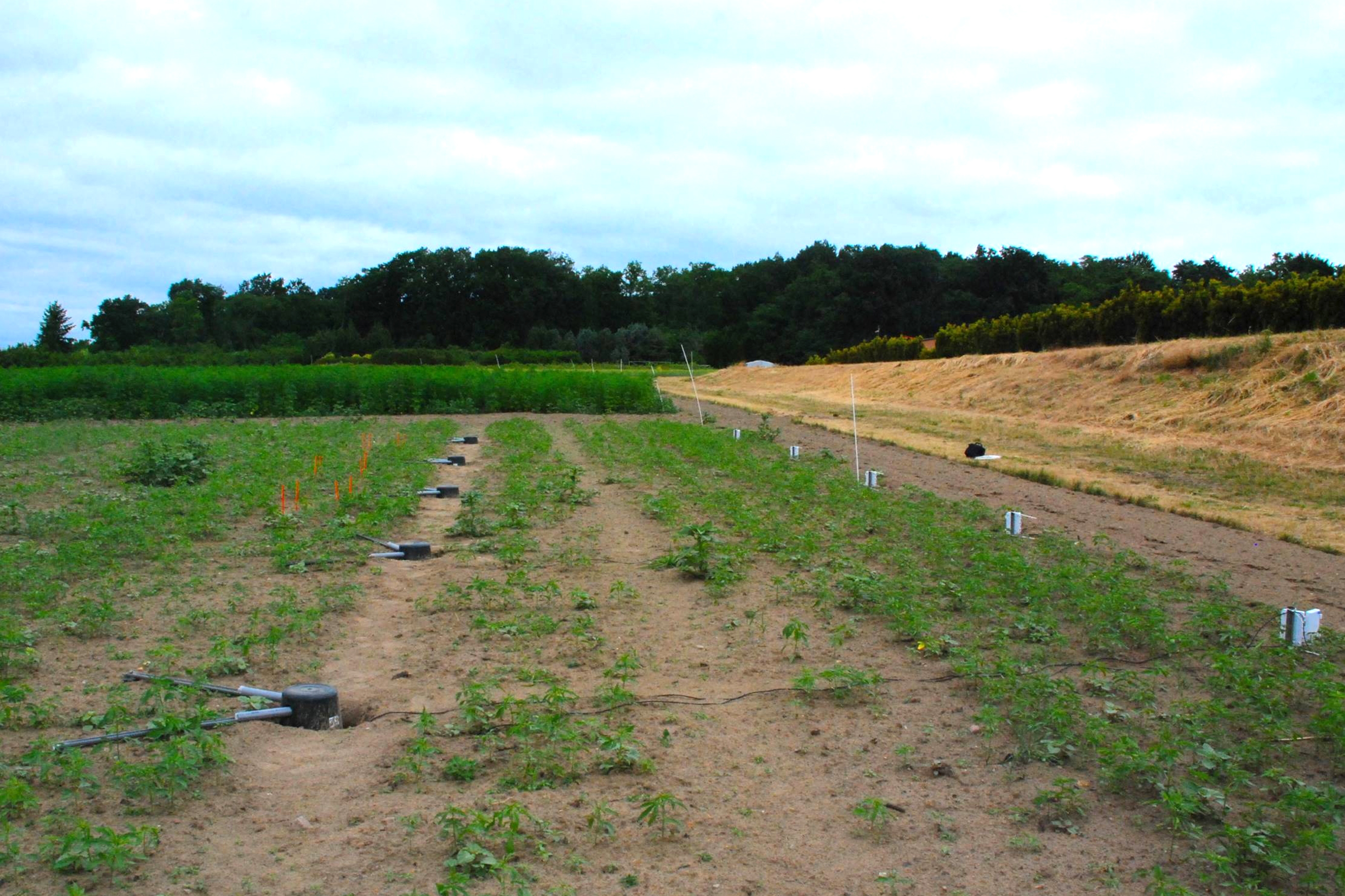 Die Wassernutzung von Hanfpflanzen im Wachstumsverlauf ist bisher wenig erforscht. ATB-Wissenschaftler*innen haben daher in einem Feldversuch die Wasserproduktivität zweier Hanfsorten untersucht. Die an mitteleuropäische Standortbedingungen adaptierten Sorten ‘Santhica 27‘ und ‘Ivory‘ wurden basierend auf Ergebnissen des 2017 abgeschlossenen Projekts MultiHemp ausgewählt. Die Untersuchungen erfolgten am ATB-Forschungsstandort Marquardt im Nordwesten Potsdams - mit einem mittleren Jahresniederschlag von 579 mm eines der trockensten Anbaugebiete in Deutschland. Der Grundwasserspiegel liegt 10 m unter der Geländeoberkante, der sandige Boden weist eine nur begrenzte Speicherkapazität für Wasser und Nährstoffe auf. Die Vegetationsperiode 2018 war extrem trocken, von Mai bis September fiel nur an sieben Tagen geringer Niederschlag von 0,7 bis 19,6 mm. Um die Etablierung des Versuches nach dem Auskeimen abzusichern wurden die Pflanzen in der Aufgangsphase bewässert.