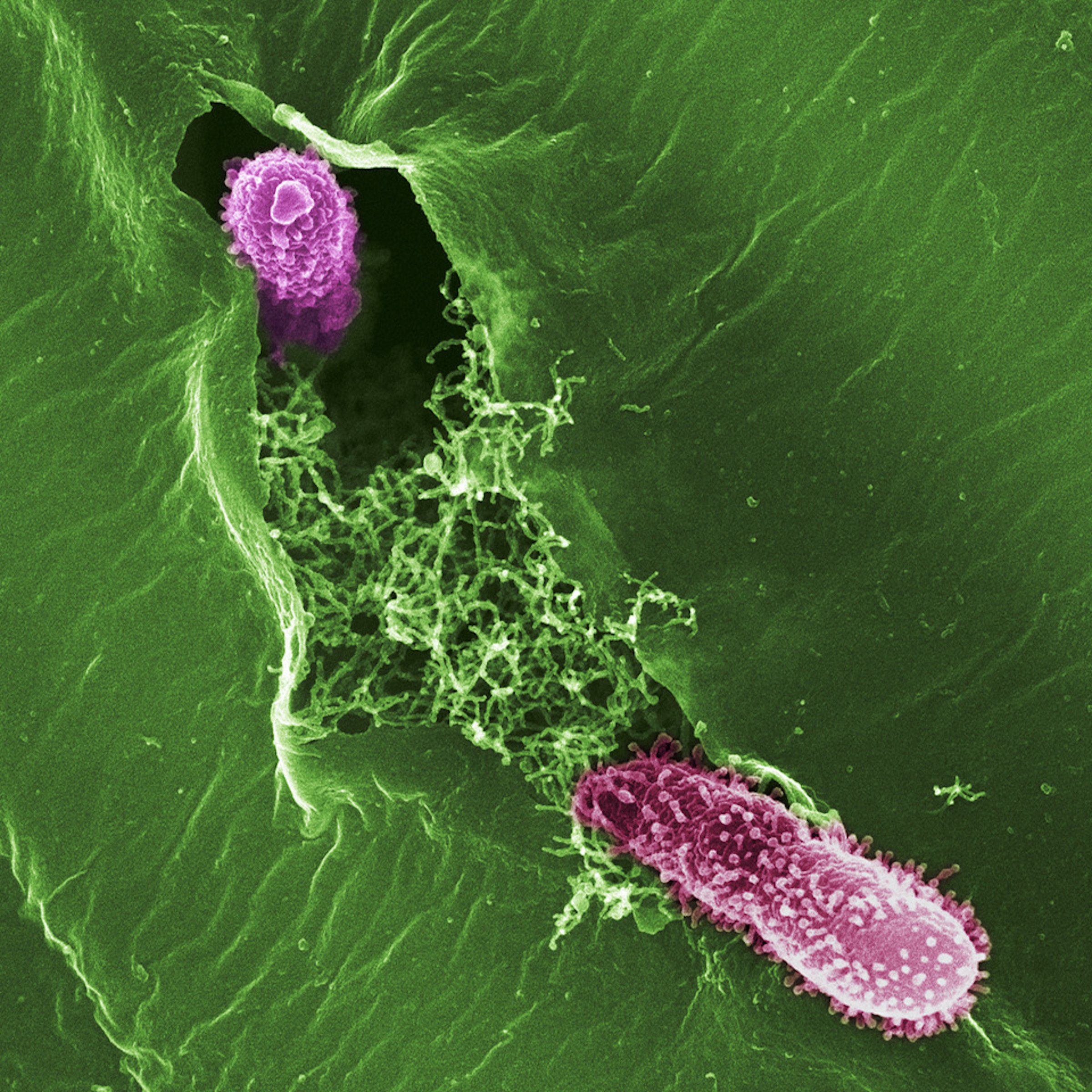 Pathogene Keime sind die Ursache für viele schwere Krankheiten bei Pflanzen, Tieren und Menschen. Oft wird dabei übersehen, dass Krankheitserreger selten allein wirken. Ein Beispiel dafür ist die Grippepandemie 1918/1919; die meisten Todesfälle wurden nicht durch das Grippevirus verursacht, sondern durch Komplikationen einer bakteriellen Lungenentzündung. Wie Erreger kooperieren, um andere, harmlose Mikroben zu verdrängen und in der Folge die infizierten Pflanzen oder Tiere schädigen, ist daher eine Frage, die in vielen Organismen von breiter Relevanz ist.