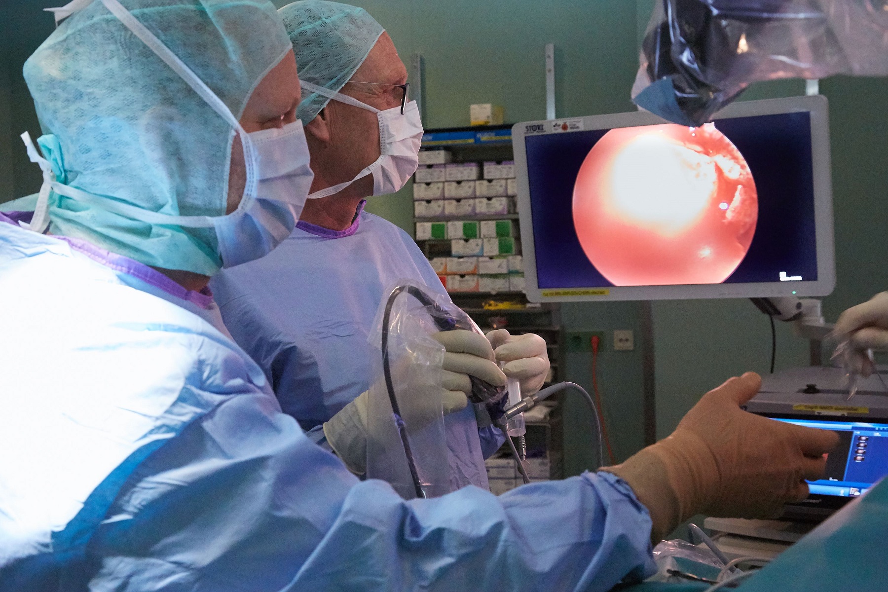 „Die Lage von Tumoren an der Hypophyse stellt wegen der Enge des Zugangsweges und wegen der Nachbarschaft zu lebenswichtigen Strukturen eine besondere Herausforderung dar. Der Tumor muss von der Kopfschlagader und dem Sehnerv vollständig und sicher abgelöst werden, wenn er diese Strukturen bedrängt. Um dafür einen optimalen Zugang zum Tumor zu bekommen, bündeln wir die Kompetenzen der schädelbasisnahen chirurgischen Fächer Neurochirurgie und HNO“, erklärt Professor Dr. Karl-Michael Schebesch, Leiter der interdisziplinären Schädelbasis-Konferenz. „Tumoren im Bereich der Hypophyse stellen ein typisches fächerübergreifendes Betätigungsfeld der Medizin dar. Endokrinologische, radiologische, neurochirurgische, strahlentherapeutische und rhinologische Expertise helfen, ein bestmögliches Behandlungsergebnis zu erzielen. Wir operieren nach dem ‚four hands, two minds‘-Prinzip. Das heißt, zwei Ärzte operieren in stetem Austausch über die Nasenlöcher“, so Professor Dr. Thomas Kühnel, stellvertretender Direktor der Klinik und Poliklinik für Hals-Nasen-Ohren-Heilkunde des UKR und Leiter des Bereiches Rhinologie, Frontobasis und vaskuläre Malformationen. Diese endoskopische Behandlungsmöglichkeit von Hypophysentumoren existiert am UKR seit etwa vier Jahren und ist in Regensburg einzigartig.