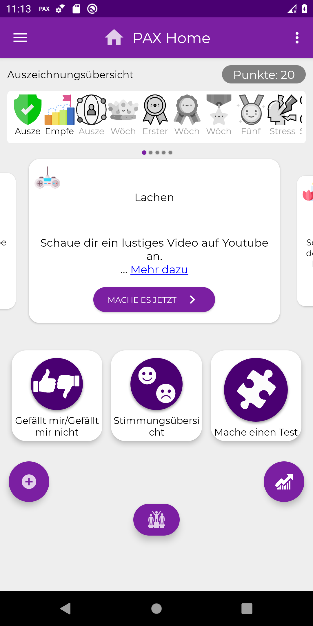 „Spiel einen Song und tanz dazu“, „Schau Dir ein lustiges Video auf YouTube an“ oder „Mach eine Achtsamkeitsübung“ sind Empfehlungen, die die Nutzer der App PAX-Stressresilienz bekommen, wenn ihr Stresslevel zu hoch ist. Mit solchen Mini-Interventionen soll der Stressabbau effektiv gelingen, ohne die Alltagsroutine zu sehr zu unterbrechen. Außerdem erhalten die Nutzer Hinweise zu Strategien, wie sich Stress besser bewältigen lässt. Dafür fragt die App die aktuelle Stimmung und bestimmte Verhaltensweisen ab. Außerdem erfasst sie eine Reihe von Daten zur Nutzung des Smartphones.