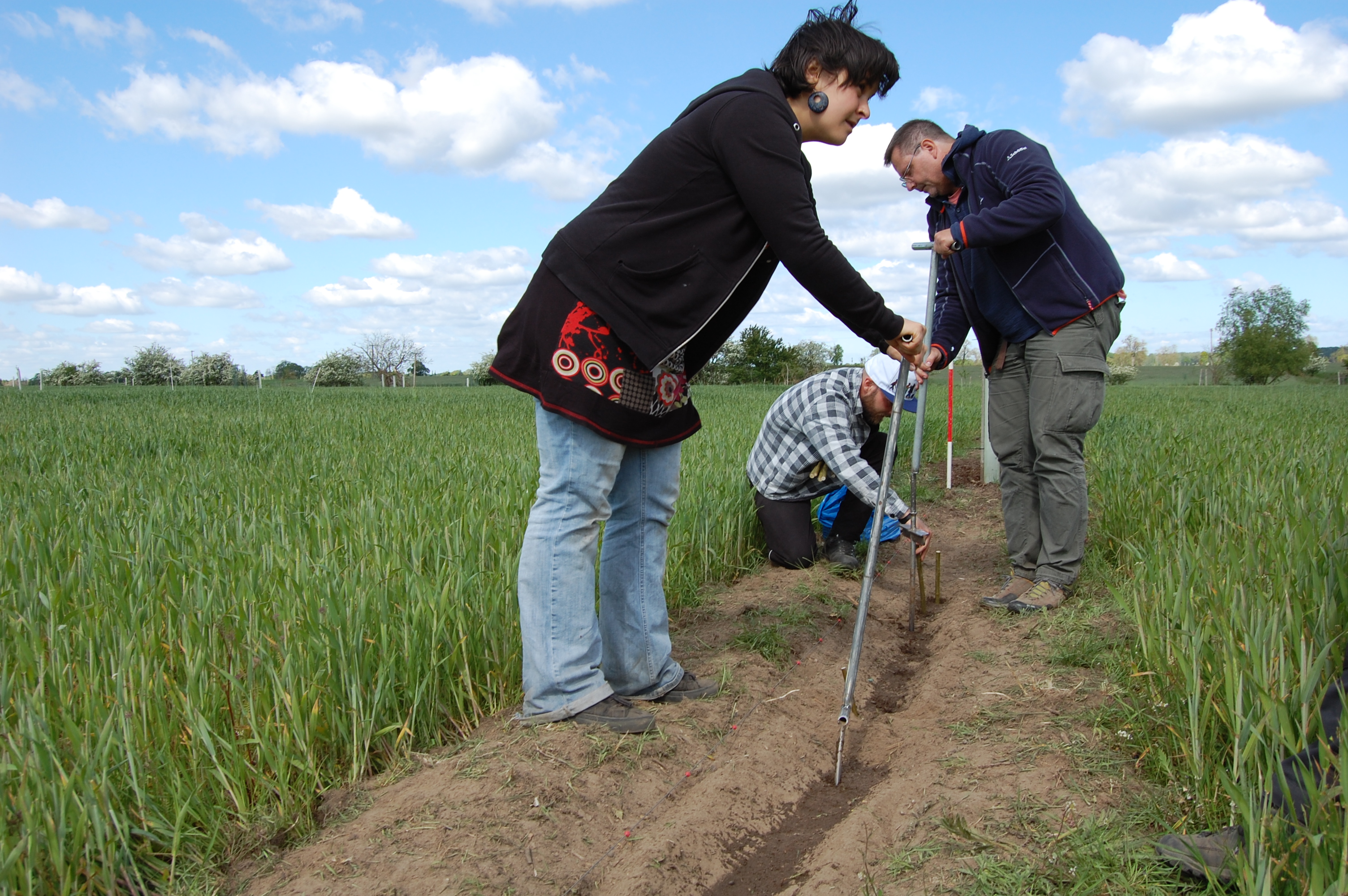 „Wir werden mit einer Gruppe von Studierenden 5000 Weidenstecklinge pflanzen. Die Weidenstreifen sollen im Kurzumtrieb bewirtschaftet werden und nach der Ernte als Frischholzhackschitzel auf der Fläche ausgebracht werden, um den Hummusgehalt zu erhöhen“, erklärt Lea Martetschläger, HNEE-Studentin und Organisatorin der Pflanzaktion. Die rund ein Hektar große Fläche befindet sich auf der gegenüberliegenden Straßenseite zur bisherigen Agroforstfläche, auf der seit 2017 Studierende mehrere Pflanzungen bereits realisiert und erste Daten zu deren Entwicklungen aufnehmen konnten. „Trotz der Hitzesommer von 2018 und 2019 hatten wir eine Überlebensrate der Bäume von 73 Prozent. Vor allem die gepflanzten Eichenarten hatten Probleme mit der Hitze. Bei den anderen Arten wie Elsbeere, Speierling und Wildbirne war die Überlebensrate weitaus höher und lag zwischen 94 und 98 Prozent“, berichtet Lea Martetschläger. Im Frühjahr dieses Jahres wurden die Ausfälle bei den Sträuchern in den Baumreihen durch neugepflanzte Weiden ersetzt. Sie dienen der generellen Flächenbedeckung und im weiteren Verlauf des Projekts zur Biomassegewinnung. Diese Biomasse wird dann als Frischzweighäcksel verwendet und im frischen Zustand auf der Fläche ausgebracht. Ähnliches ist mit der geplanten Kurzumtriebsplantage auf der gegenüberliegenden Straßenseite entlang der B96 geplant. „Wir leisten damit einen weiteren innovativen Beitrag zur Bodenverbesserung und zum Humusaufbau, wie sich dieser auf die Fläche im Agroforstmodellprojekts Ackerbau(m) auswirkt, wollen wir gleichfalls untersuchen“, sagt die HNEE-Studentin.