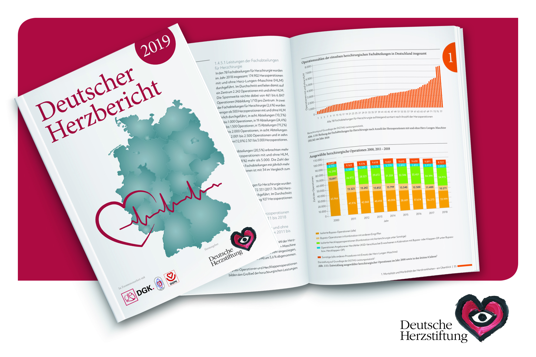 Der Deutsche Herzbericht wird von der Deutschen Herzstiftung zusammen mit den ärztlichen Fachgesellschaften für Kardiologie (DGK), Thorax-, Herz- und Gefäßchirurgie (DGTHG) sowie Kinderkardiologie (DGPK) alljährlich herausgegeben.