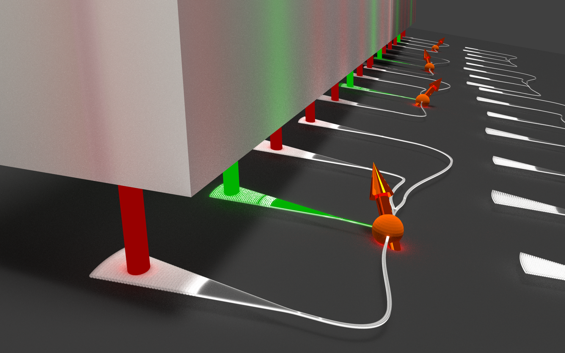 Bislang waren aufwendige Mikroskop-Aufbauten nötig, um diamantenbasierte Quantensysteme zu kontrollieren. Mit Fabrikationstechniken, die der Chip-Herstellung von Computerprozessoren ähneln, kann eine vergleichbare Lichtführung mit Wellenleitern (Nanofasern) auf einem Silizium-Chip realisiert werden. Diese Nanometer großen Lichtwellenleiter wurden mit dem Elektronenstrahl Lithografen und der Reaktiven Ionenätz-Anlage der Münster Nanofabrication Facility (MNF) hergestellt. „Bei uns ist der Versuchsaufbau auf ein paar hundert Quadratmikrometer zusammengeschrumpft. Das bringt nicht nur Platzvorteile in Hinsicht auf zukünftige Anwendungen mit Quantensystemen in großen Stückzahlen, sondern erlaubt erstmals die Kontrolle mehrerer solcher Quantensysteme gleichzeitig“, erläutert Juniorprofessor Dr. Carsten Schuck vom Physikalischen Institut der WWU, der die Studie mit Juniorprofessorin Dr. Doris Reiter aus der Festkörpertheorie leitete.