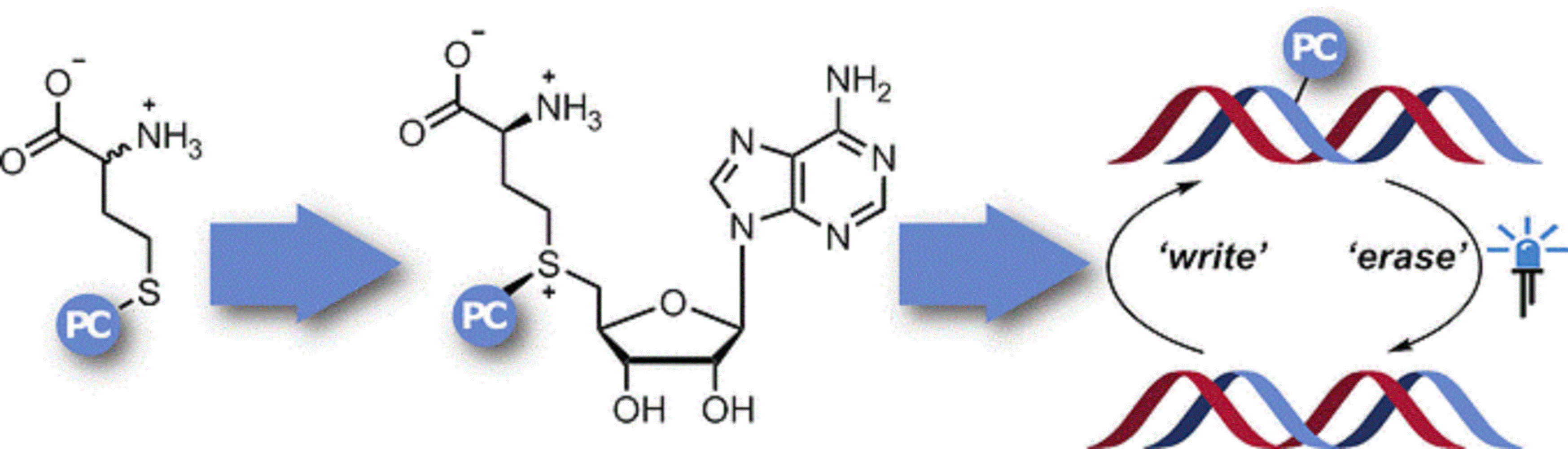 Beide PC-MATs waren mit DNA- und RNA-MTasen kompatibel und ermöglichten ein Anknüpfen von Photocages an alle natürlichen Methylierungsstellen einer Plasmid-DNA. Bestrahlung mit Licht hob die Blockaden wieder auf.