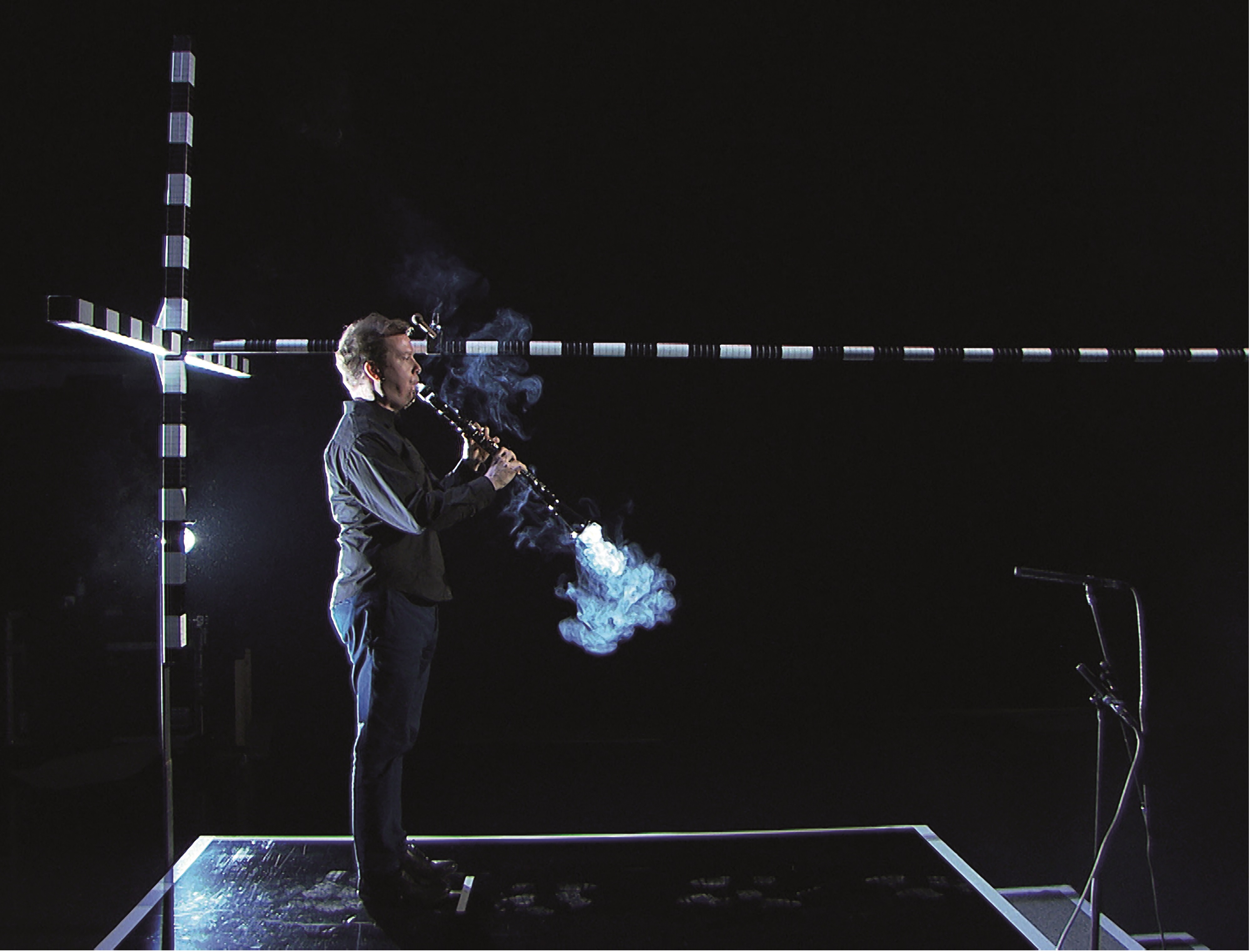 Evaluating the measurements of the aerosol clouds emitted showed that musicians would need to maintain a greater distance from colleagues in front of them than from those to either side. However, this presupposes that the room is constantly ventilated and thus the aerosols are regularly removed by fresh air. ‘For the wind instruments measured, there were differences in the way aerosols dispersed towards the front’, says Matthias Echternach. ‘With trumpets and clarinets, our measurements showed the cloud extending from the player’s mouth to a distance of 0.9 meters on average. However, individual musicians also achieved a range of 1.5 metres, so a safety gap of 2 metres to the front seems sensible. But for flutes, the forward impulse dispersion from the mouthpiece reached distances of up to 2 metres. That means a safety gap of 2 meters is not enough and 3 meters should be considered appropriate. Dispersions emitted to the side remained below one meter for all musicians. A safety gap of 1.5 meters therefore seems sufficient, in contrast to the 2 meters that has previously been recommended.’