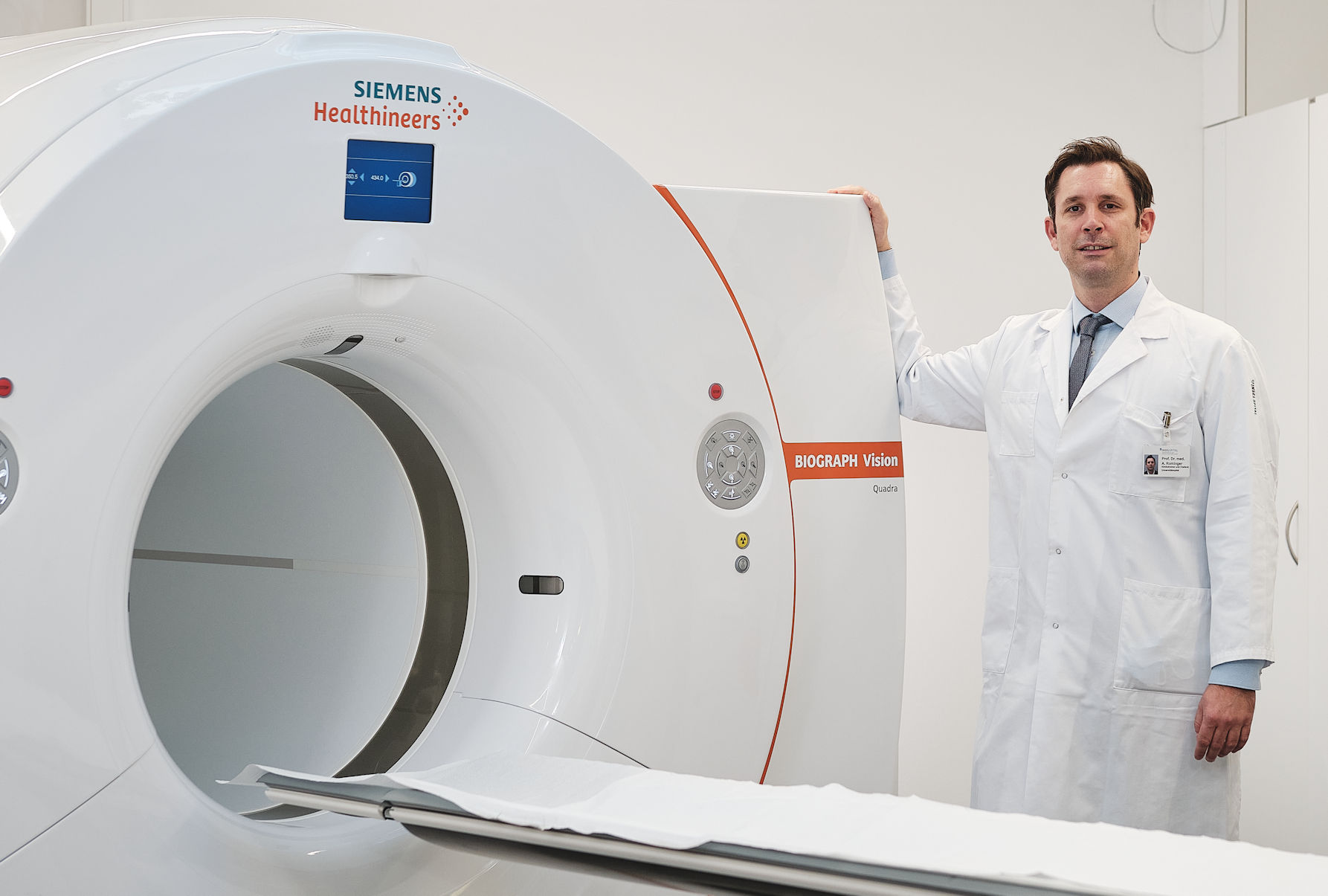 “The new PET/CT scanner, which is going into operation at the Department of Nuclear Medicine, is a real milestone”, Prof. Axel Rominger was delighted to say. “With a field of view extended over 106 cm, it is now for the first time possible to produce PET/CT images of the entire head and torso at one go. This means that, for the first time, actual 4D images of a large section of the body can be produced”. What is more, the technology has become faster by several orders of magnitude and is more sensitive. Prof. Axel Rominger pointed out the following advantages for patients: “On the one hand, the time required for imaging can be shortened, and on the other, the radioactivity levels for the radiopharmaceuticals can be reduced, which makes for lower exposure”.