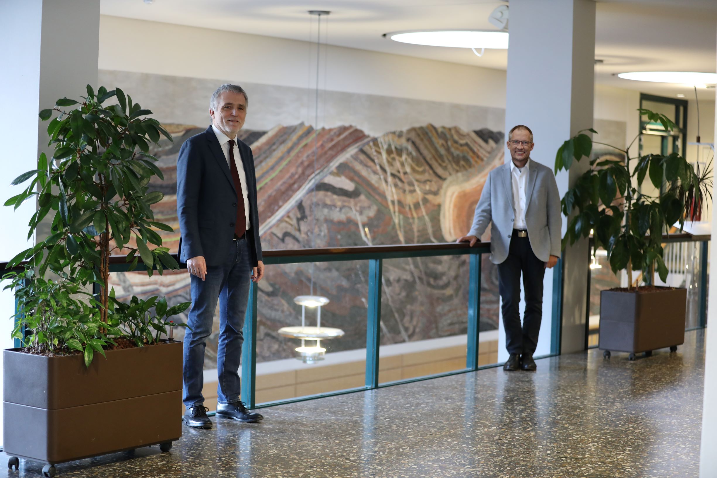 Das Leibniz-Institut für Angewandte Geophysik (LIAG) setzt mit Beschluss seines Kuratoriums Prof. Dr. Manfred Frechen offiziell als kommissarischen Direktor ein. Prof. Dr. Gerald Gabriel tritt dessen bisherige Stelle als stellvertretender Direktor an. Beide leiten derzeit die Forschungsbereiche „Geochronologie“ sowie „Seismik und Potenzialverfahren“ im Institut. Zudem bekam die Leitung im LIAG den Auftrag, in einem Rahmenkonzept ihre Forschungslinie hinsichtlich der Startthemen Grundwasser-Geophysik und Geogefahren zu konkretisieren – hin zu einem Institut für Umweltgeophysik.