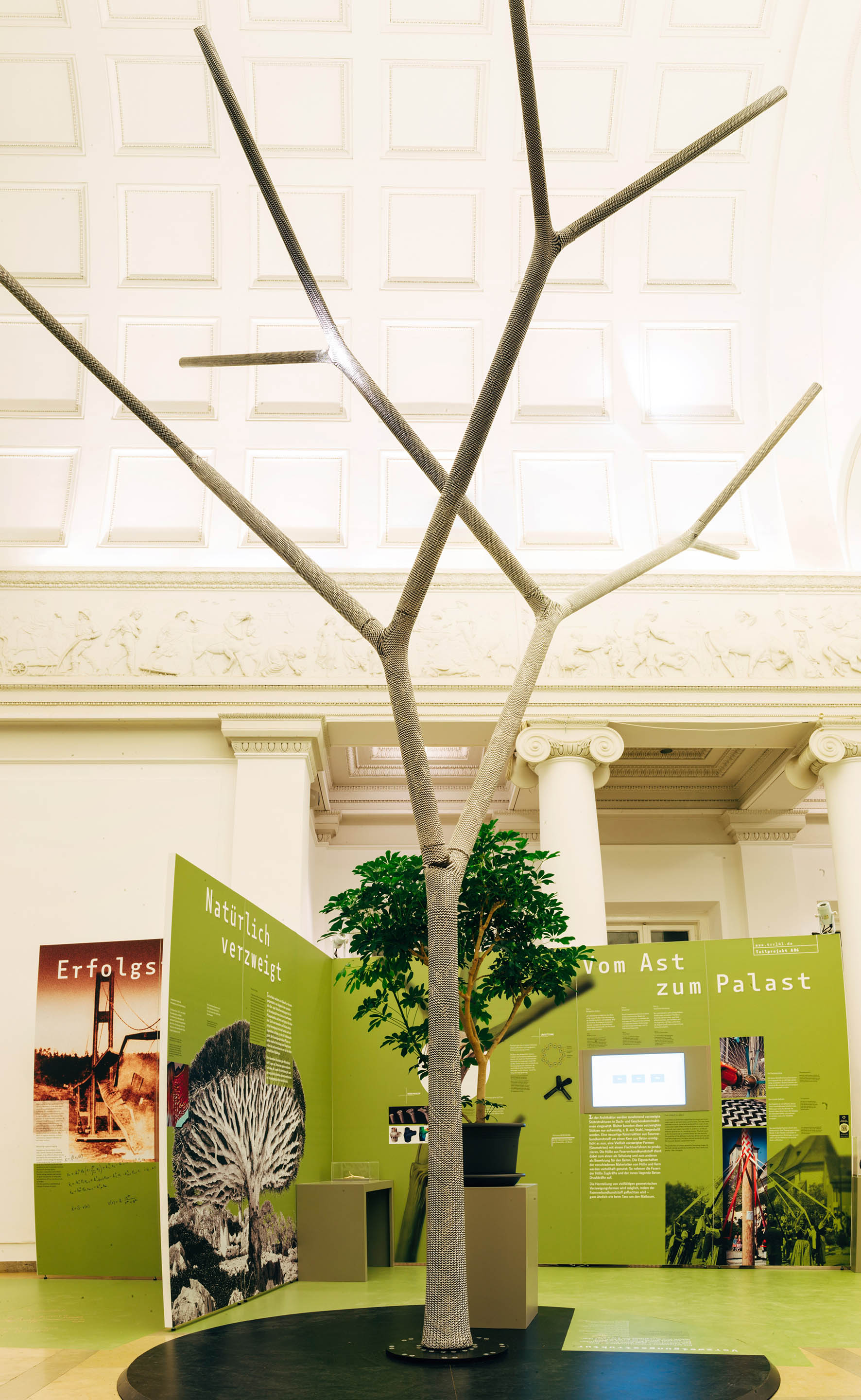 Architektonische Bauten mit einem Tragwerk aus verzweigten Stützen zeichnen sich durch offene, weite und lichte Räume aus. Die technische Herausforderung bei verzweigten Tragkonstruktionen ist das Verbindungsbauteil – der Tragwerksknoten – zwischen den geraden Stäben, welcher komplexen Kräften ausgesetzt ist.