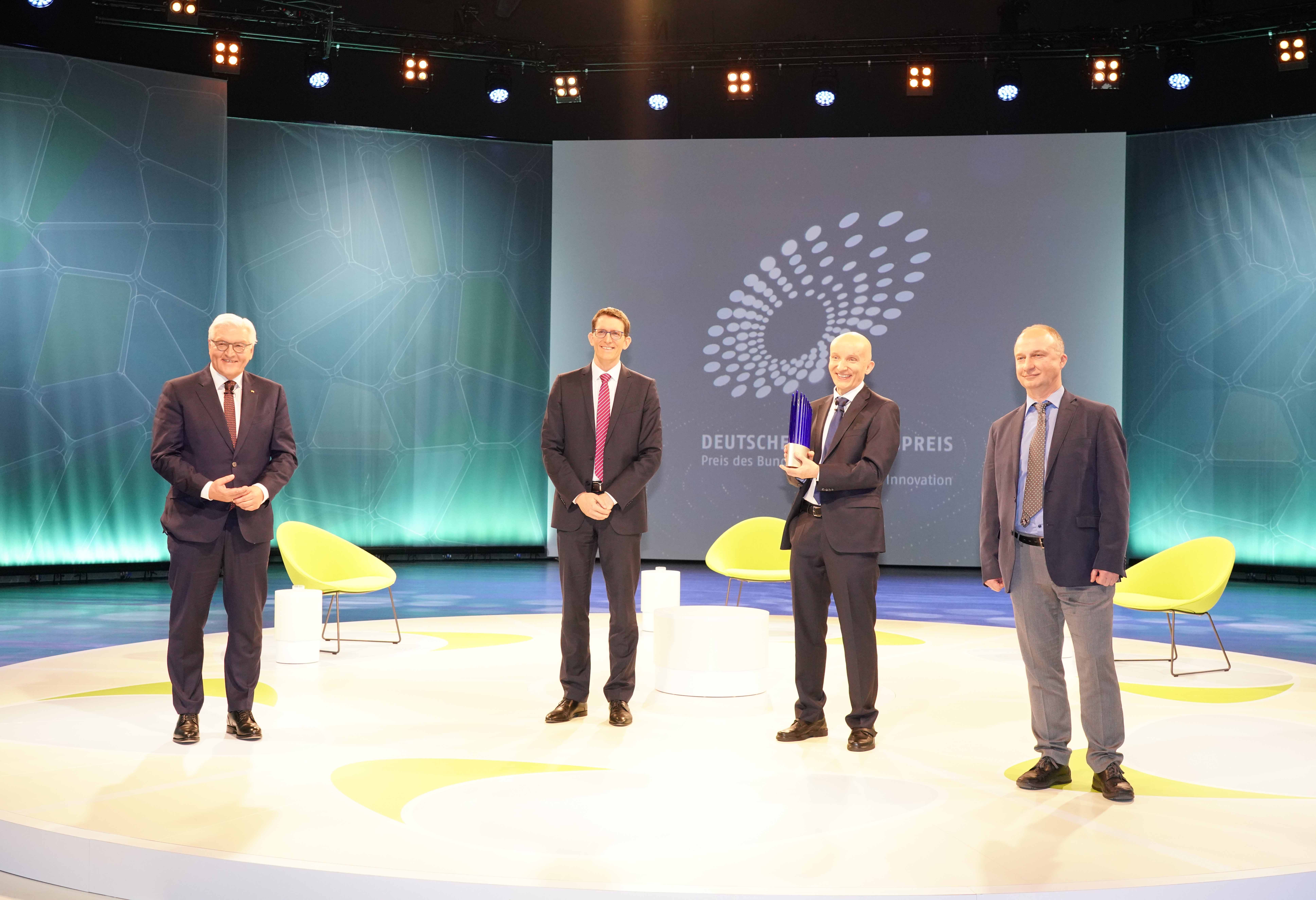 Bundespräsident Frank-Walter Steinmeier gab heute in einer feierlichen Zeremonie in Berlin die Gewinner des Deutschen Zukunftspreis 2020 bekannt. Für ihr Projekt „EUV-Lithographie – Neues Licht für das digitale Zeitalter“ zeichnete der Bundespräsident das Experten-Team um Dr. Peter Kürz, ZEISS Sparte Semiconductor Manufacturing Technology (SMT), Dr. Michael Kösters, TRUMPF Lasersystems for Semiconductor Manufacturing, und Dr. Sergiy Yulin, Fraunhofer-Institut für Angewandte Optik und Feinmechanik IOF in Jena, mit seinem Preis für Technik und Innovation aus.