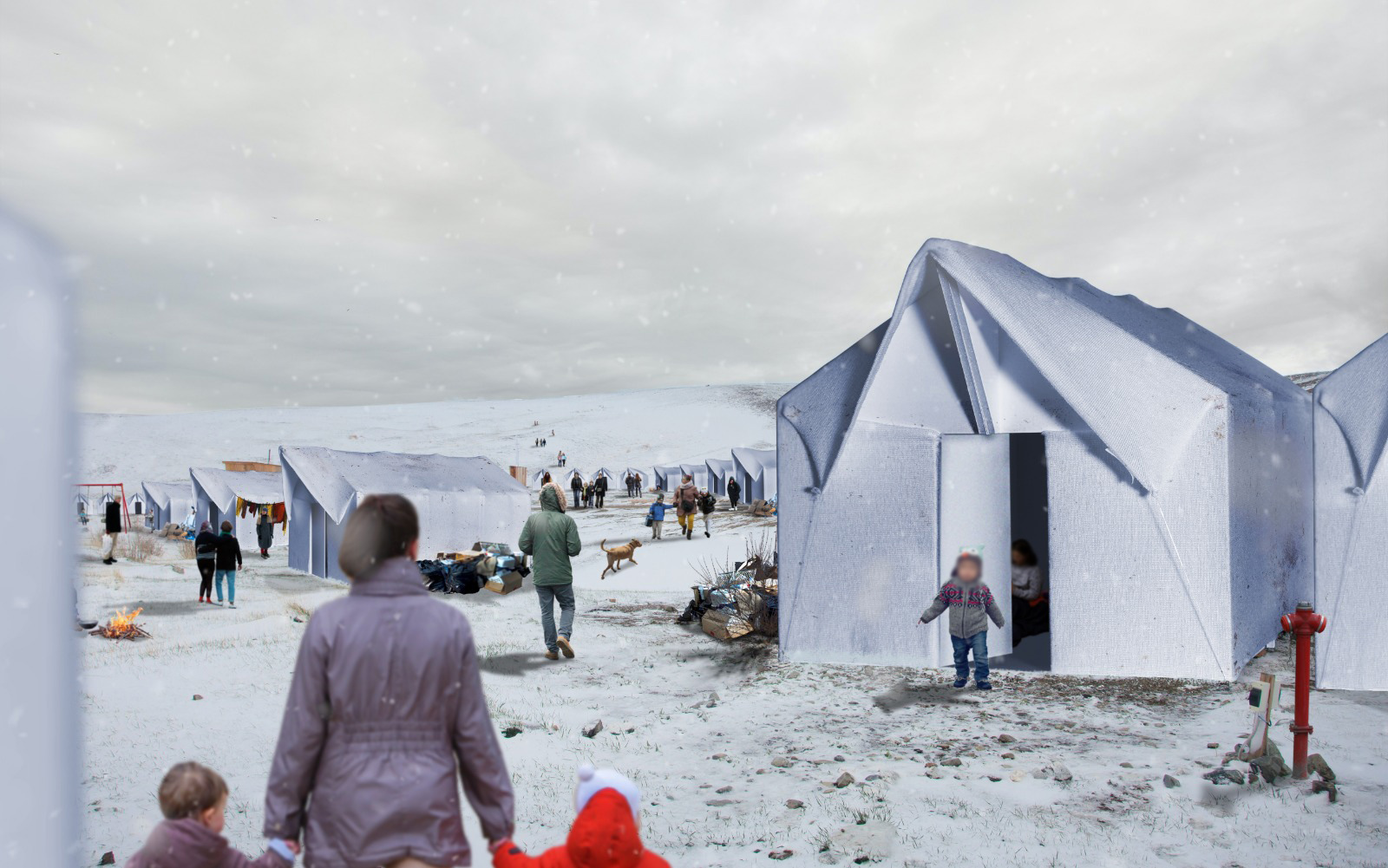 zeltHAUS entwickelt nachhaltige und temporäre Unterkünfte, die in humanitären Krisen zum Einsatz kommen können. Im Gegensatz zu gewöhnlichen Zelten ist das zeltHAUS gedämmt, so dass es wie ein Haus vor jedem Klima und zu jeder Jahreszeit Schutz bietet. Aufgrund seines einfachen Designs und des geschützten Faltsystems kann es einfach ohne die Hilfe von Werkzeugen oder jegliche Vorkenntnisse in kürzester Zeit aufgebaut werden. Es besteht aus einem recycelten PET Material, welches nach seiner Verwendung erneut recycelt oder wiederverwendet werden kann. Als Baumaterial kommen ausgeschäumte, dreidimensionale Textilstrukturen zum Einsatz, zu denen im Labor Textiler Leichtbau an der Frankfurt UAS unter Leitung von Prof. Dipl.-Ing. Claudia Lüling, Professorin für Entwerfen und Gestalten, geforscht wird.