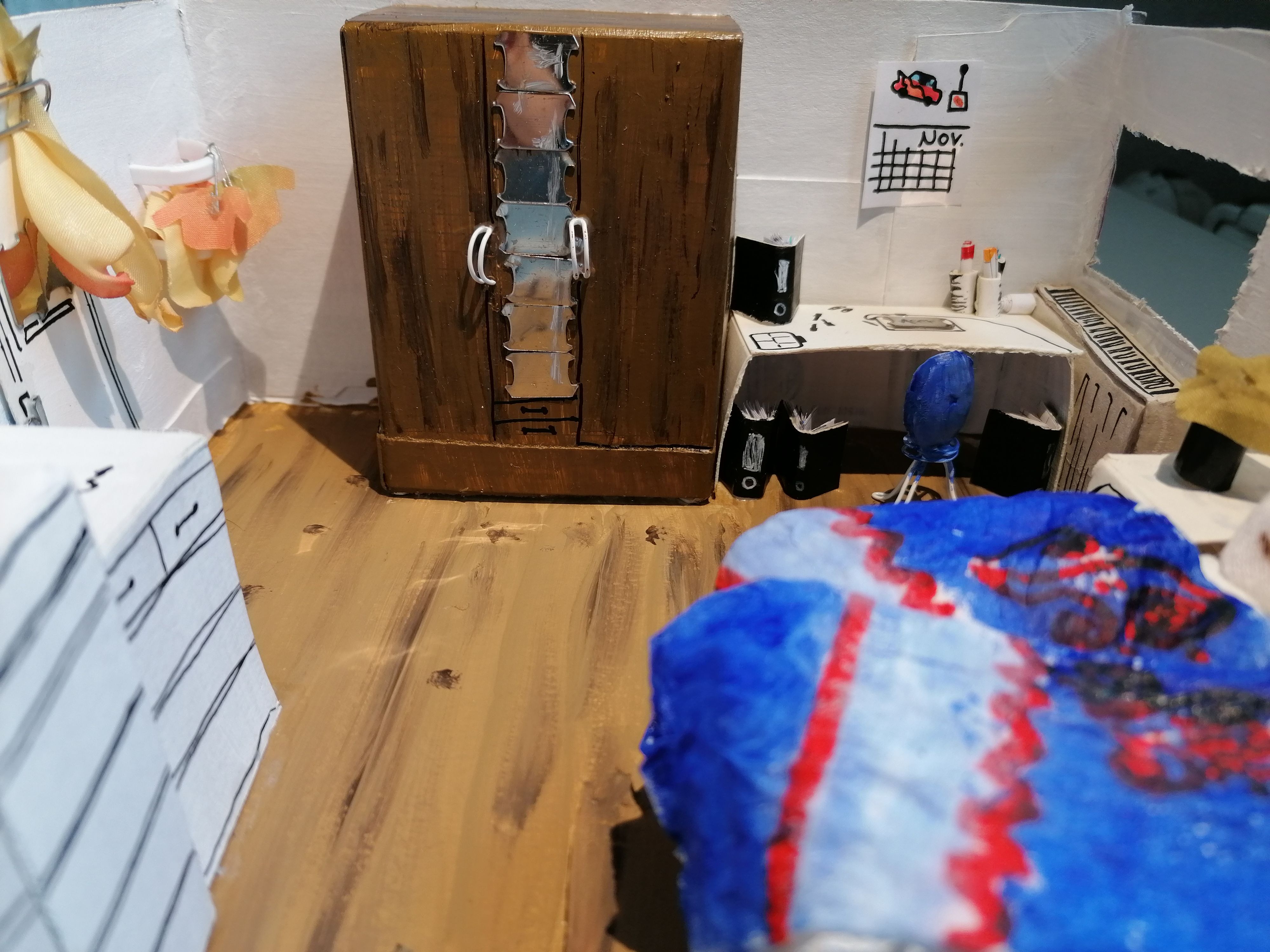 Ein Highlight des Seminars ist das Projekt „Wildes Basteln“, bei dem Kunststudierende ihr eigenes Zimmer als Modell nachgebaut haben. Intuitiv und improvisierend haben sie dabei Alltagsmaterialien umgedeutet: aus Eierkartons oder Kaffeepads wurden Schreibtischstühle und aus zerknülltem Papier eine aufgeworfene Bettdecke. Entstanden ist ein „immenses Spektrum an Arbeiten – von detailliert eingerichteten Puppenstuben über cleane Wohnwelten bis hin zu abstrakt umgesetzten Modellen“, freut sich Prof. Dr. Schäfer.