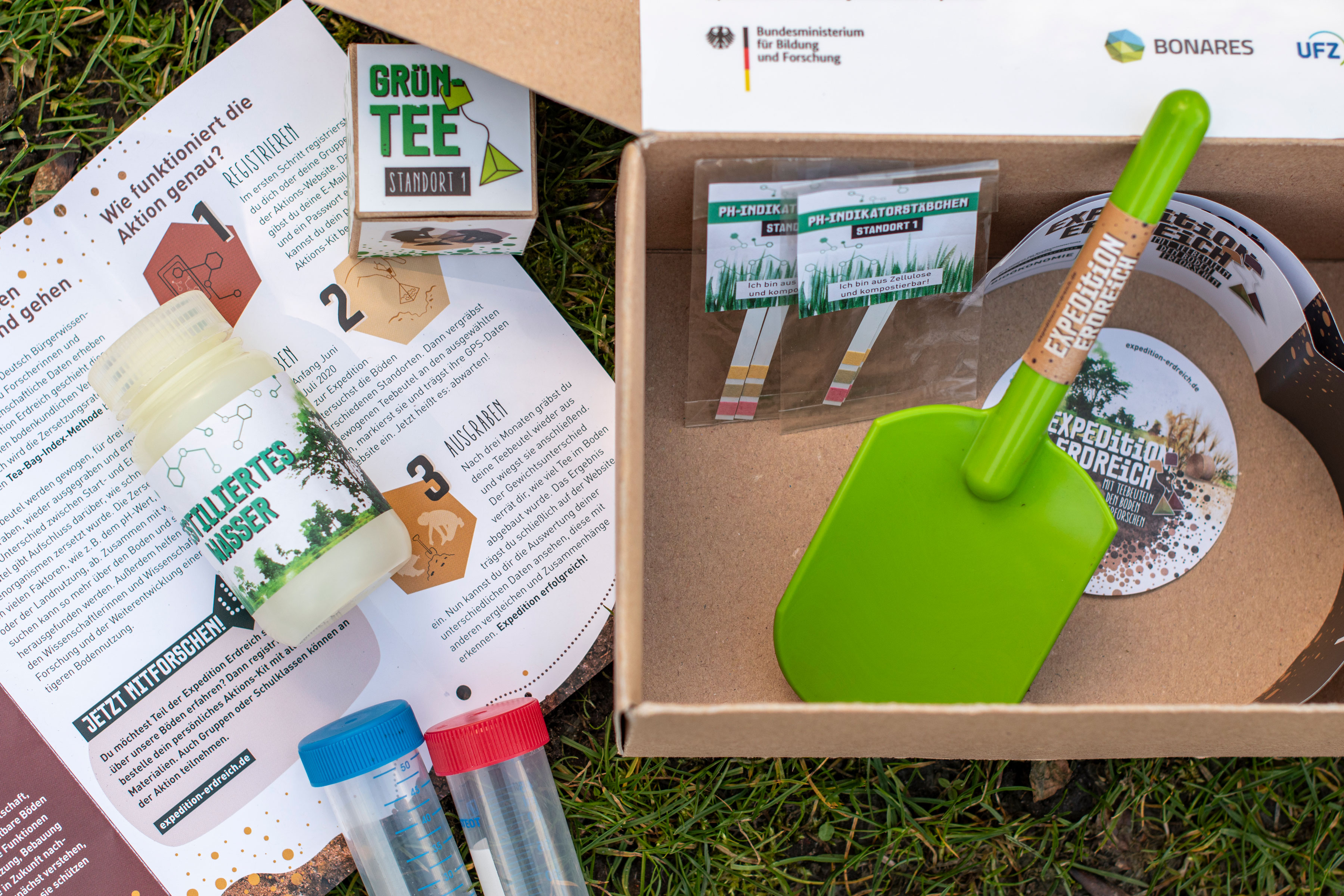 Ob jung oder alt – wer bei der Expedition Erdreich mitmacht, lernt den Boden in seiner Region aus einem ganz neuen Blickwinkel kennen und schätzen. Die Bürgerforschenden werden auf der Webseite https://www.expedition-erdreich.de/ mit einer Vielzahl von Informationen bei der Auswertung der Daten unterstützt. Pädagogisches Begleitmaterial kann ebenfalls kostenfrei bestellt werden. Ein Aktionsheft bietet spannende Aufgaben rund um das Thema Boden. Für Gruppenleitungen und Lehrkräfte gibt es außerdem Lehr- und Arbeitsmaterial, das zentrale Bodenthemen vertieft und auch unabhängig von der Aktion, modular oder unterrichtsbegleitend, eingesetzt werden kann. Alles, was die Teilnehmenden neben dem Aktions-Kit sonst noch brauchen, ist ein Zugang zu einer Bodenfläche (Garten, Acker, Wald oder Wiese) und ein Smartphone oder ein anderes Ortungsgerät. Von April bis September 2021 heißt es dann: Teebeutel vergraben, drei Monate warten, Daten auswerten, Wissen ernten!
