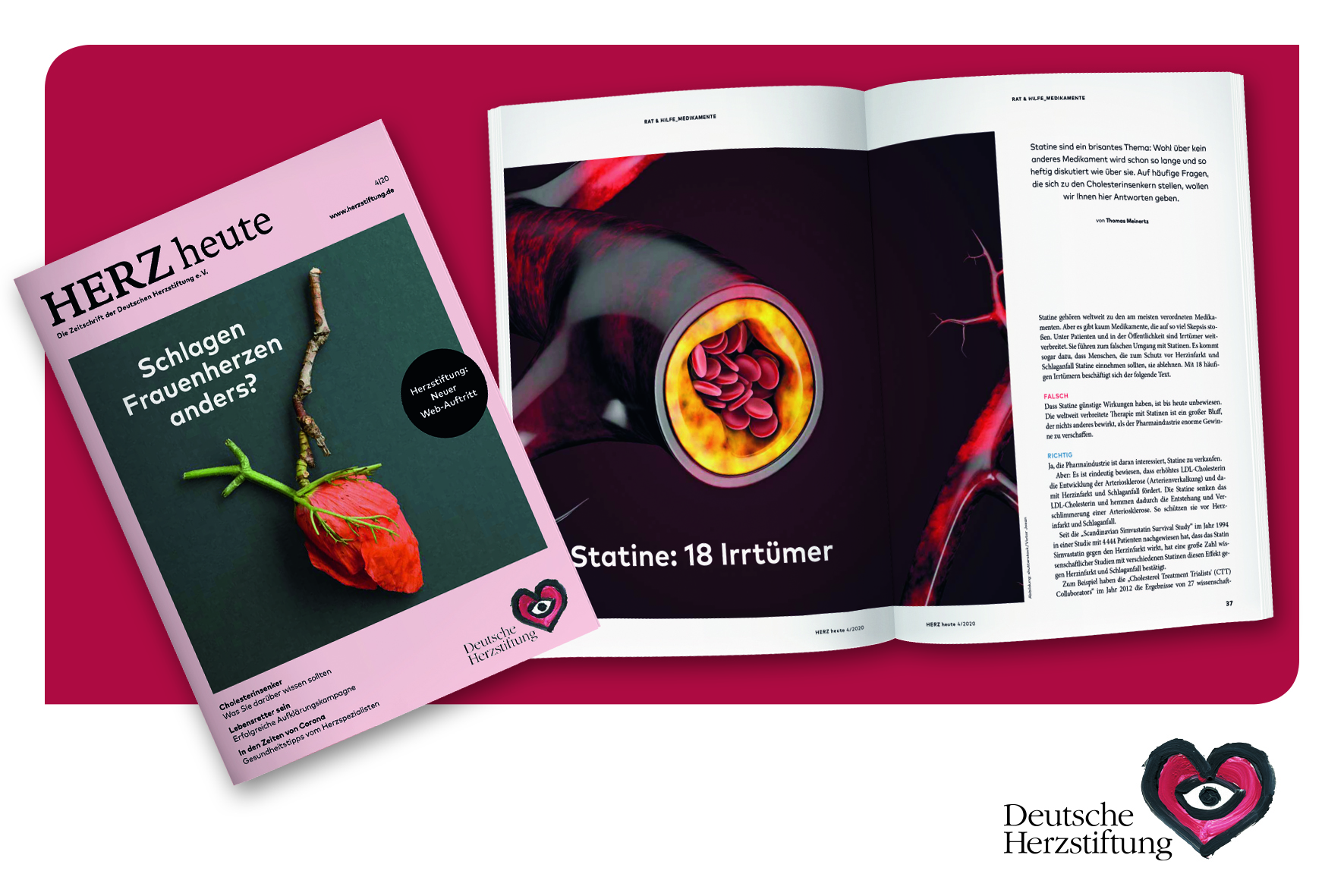Infos zu Corona bei Herz-Kreislauf-Erkrankung, zu Geschlechtsunterschieden bei Herzkrankheiten, zu häufigen Irrtümern über Cholesterinsenker sowie zur Herzforschung bietet die aktuelle Zeitschrift HERZ heute 4/2020 mit dem Titel „Schlagen Frauenherzen anders?“. Ein Rezensionsexemplar dieser aktuellen Ausgabe von HERZ heute erhalten Sie gerne per E-Mail unter presse@herzstiftung.de oder per Tel. unter 069 955128-114.