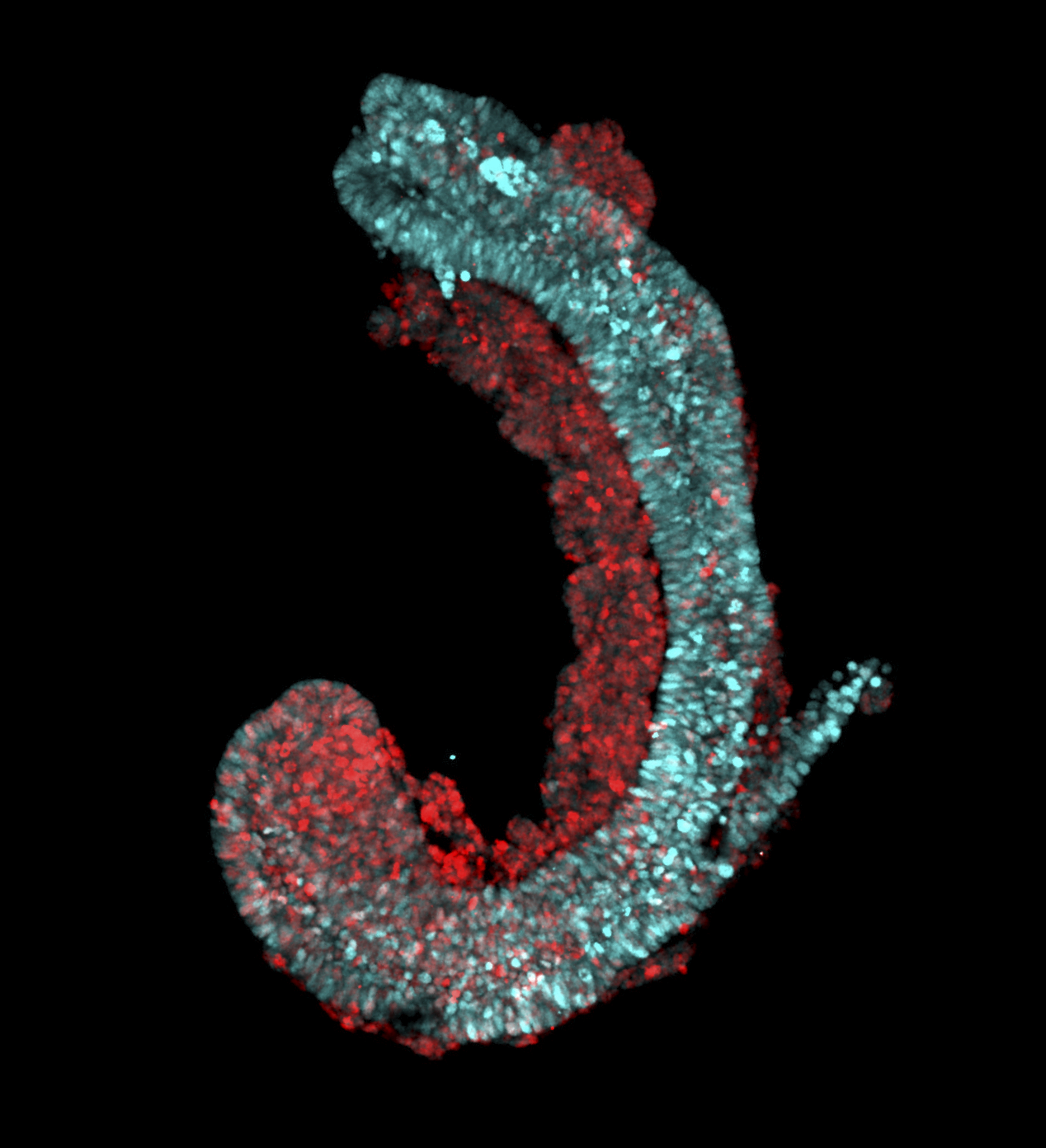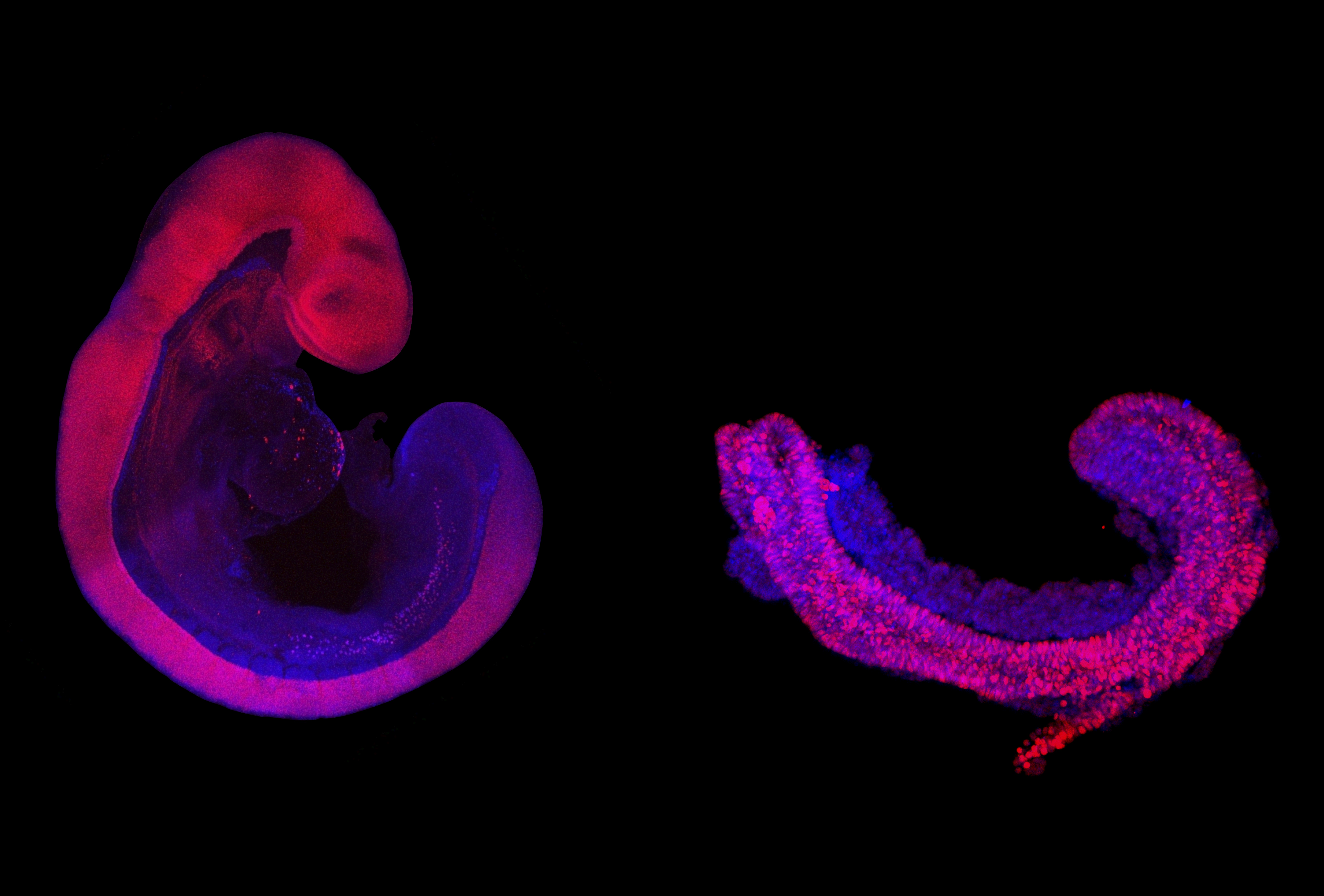 So far, it has only been possible to grow cell clusters from embryonic stem cells, so-called gastruloids. “Cellular assemblies in gastruloids develop to a similar extent like in our trunk-like structures, but they do not assume the typical appearance of an embryo,” says Jesse Veenvliet, one of the two lead authors of the study. “The cell clusters lack the signals that trigger their organization into a meaningful arrangement.”