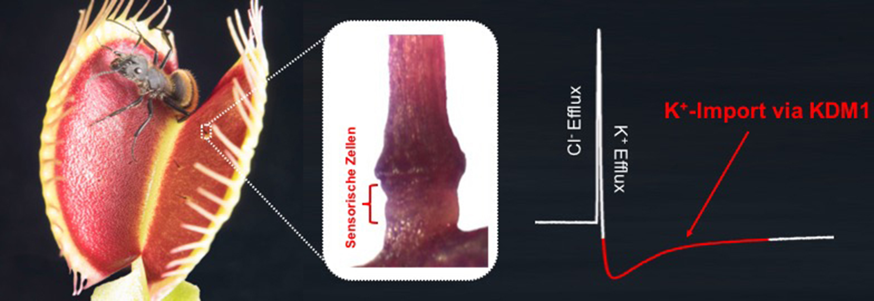 "The Venus flytrap trigger hair-specific potassium channel KDM1 can reestablish the K+ gradient required for hapto-electric signalling." Anda L. Iosip, Jennifer Böhm, Sönke Scherzer, Khaled A. S. Al-Rasheid, Ingo Dreyer, Jörg Schultz, Dirk Becker, Ines Kreuzer, Rainer Hedrich. PLOS Biology, 9 December 2020, https://doi.org/10.1371/journal.pbio.3000964