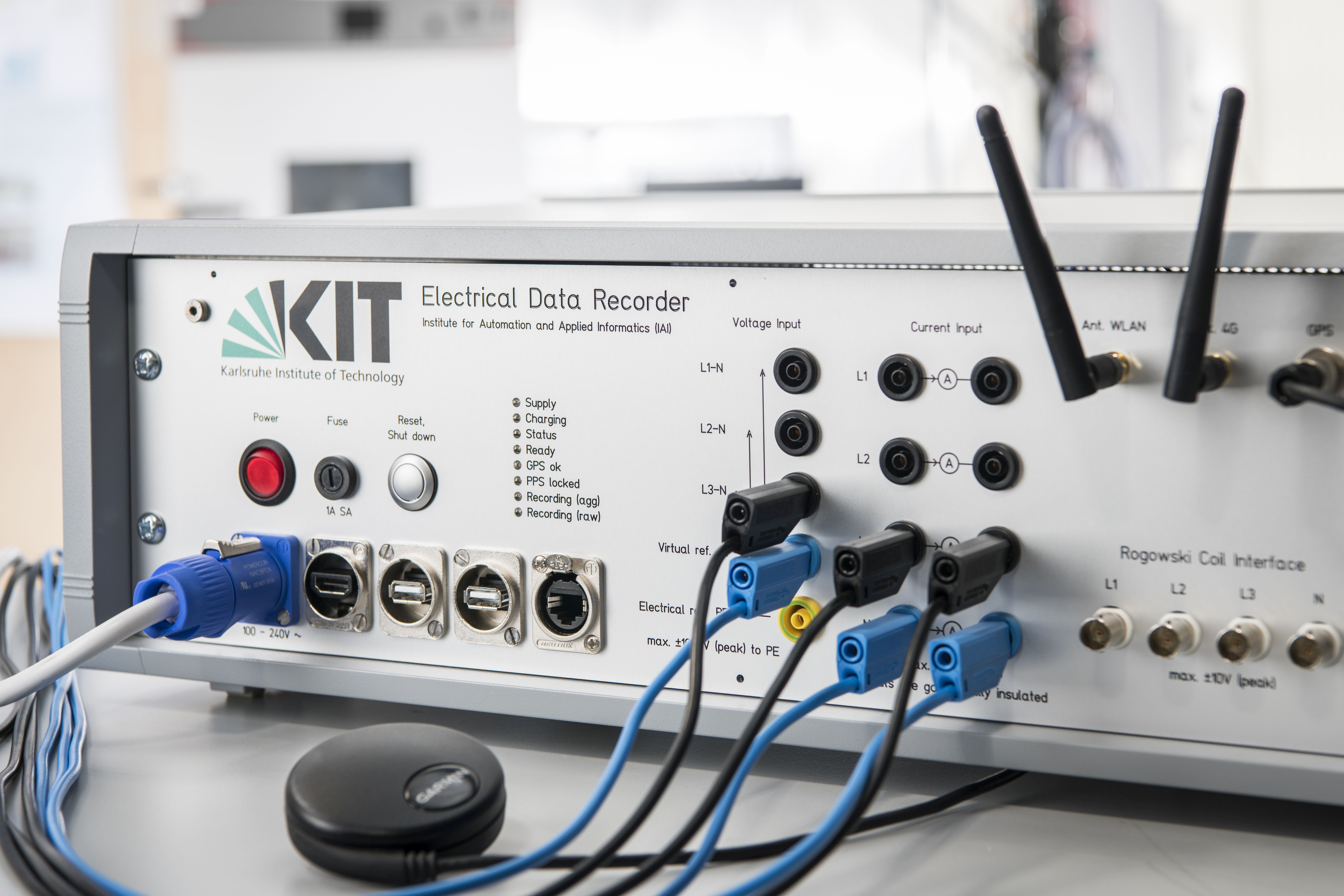 Ein Forschungsteam des Instituts für Automation und angewandte Informatik (IAI) am KIT stellte für diese großangelegte Messkampagne von insgesamt rund 430 Tagen mehrere neuartige Aufnahmegeräte zur Verfügung. Der am IAI entwickelte Electrical Data Recorder (EDR) verwendet einen GPS-Empfänger zur Zeitsynchronisation und ermöglicht die Aufzeichnung von Roh- und Frequenzdaten mit sehr hoher Auflösung. Das Gerät ist tragbar und in der Lage, die Rohdaten über einen sicheren VPN-Tunnel direkt in die Datenbank „Large Scale Data Facility“ am Steinbuch Centre for Computing des KIT zu übertragen, wo sie für Forschungszwecke weiterverarbeitet werden. „Unser Rekorder ist nicht nur hochleistungsfähig, sondern auch praktisch zu handhaben“, erläutert Dr. Heiko Maaß vom IAI. Um die Messungen an einem bestimmten Ort zu starten, braucht der EDR nur eine Steckdose. Wenn kein Internet zur Verfügung steht, kann er die Daten über mehrere Wochen lokal speichern.