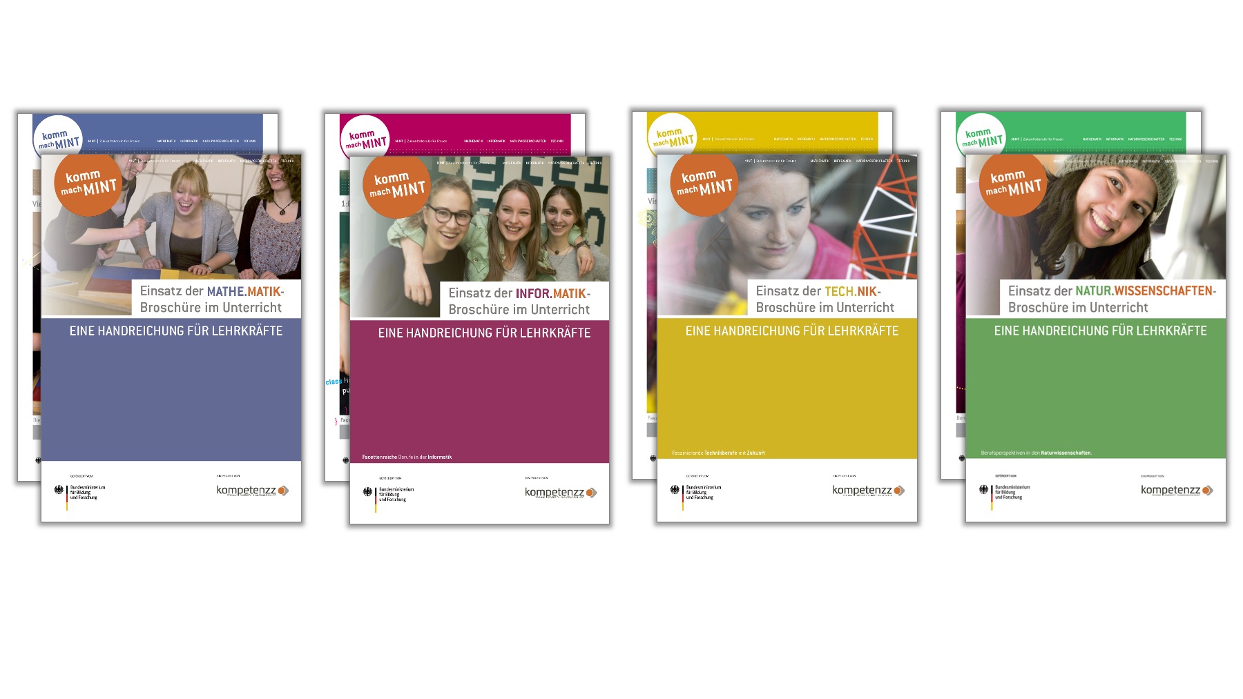 Um das zu ändern, hat die "Komm, mach MINT."-Geschäftsstelle Broschüren zu den einzelnen MINT-Schwerpunkten Mathematik, Informatik, Naturwissenschaften und Technik herausgegeben, in denen die entsprechenden Berufs- und Studienmöglichkeiten vorgestellt werden und Auszubildende, Studierende und Berufstätige einen Einblick in ihren Berufsalltag geben und ihre persönlichen Erfahrungen schildern. Eines machen die Portraits der Rollenvorbilder besonders deutlich: MINT-Berufe sind zukunftsweisend und bieten vielfältige Möglichkeiten, verschiedene Interessen zu kombinieren, beispielsweise in der Medieninformatik, der Bionik oder der Umwelttechnik.