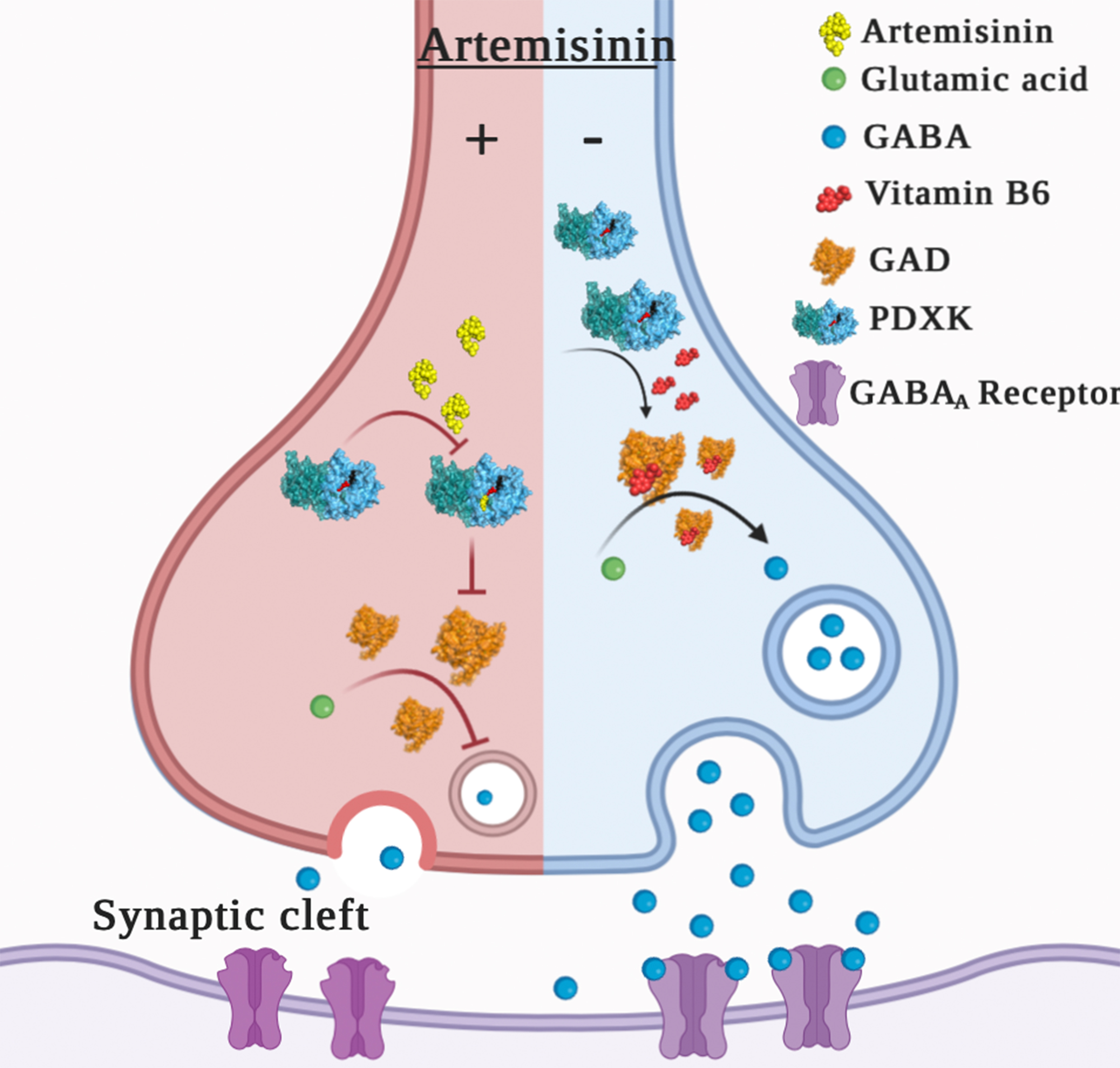 Vikram Babu Kasaragod, Anabel Pacios-Michelena, Natascha Schaefer, Fang Zheng, Nicole Bader, Christian Alzheimer, Carmen Villmann and Hermann Schindelin; Pyridoxal Kinase Inhibition by Artemisinins Downregulates Inhibitory Neurotransmission (2020) PNAS https://www.pnas.org/content/early/2020/12/11/2008695117