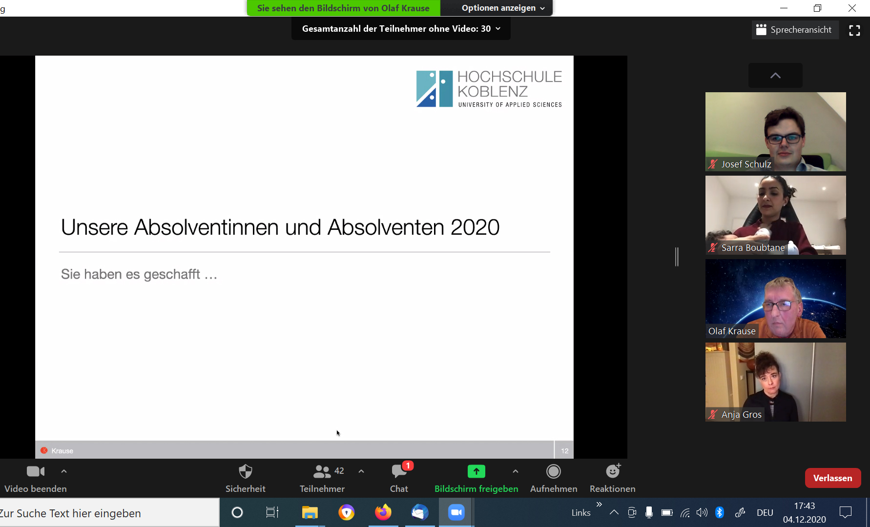 Dieses Jahr ist alles anders: Absolventenverabschiedung der Werkstofftechnik Glas & Keramik per Videokonferenz