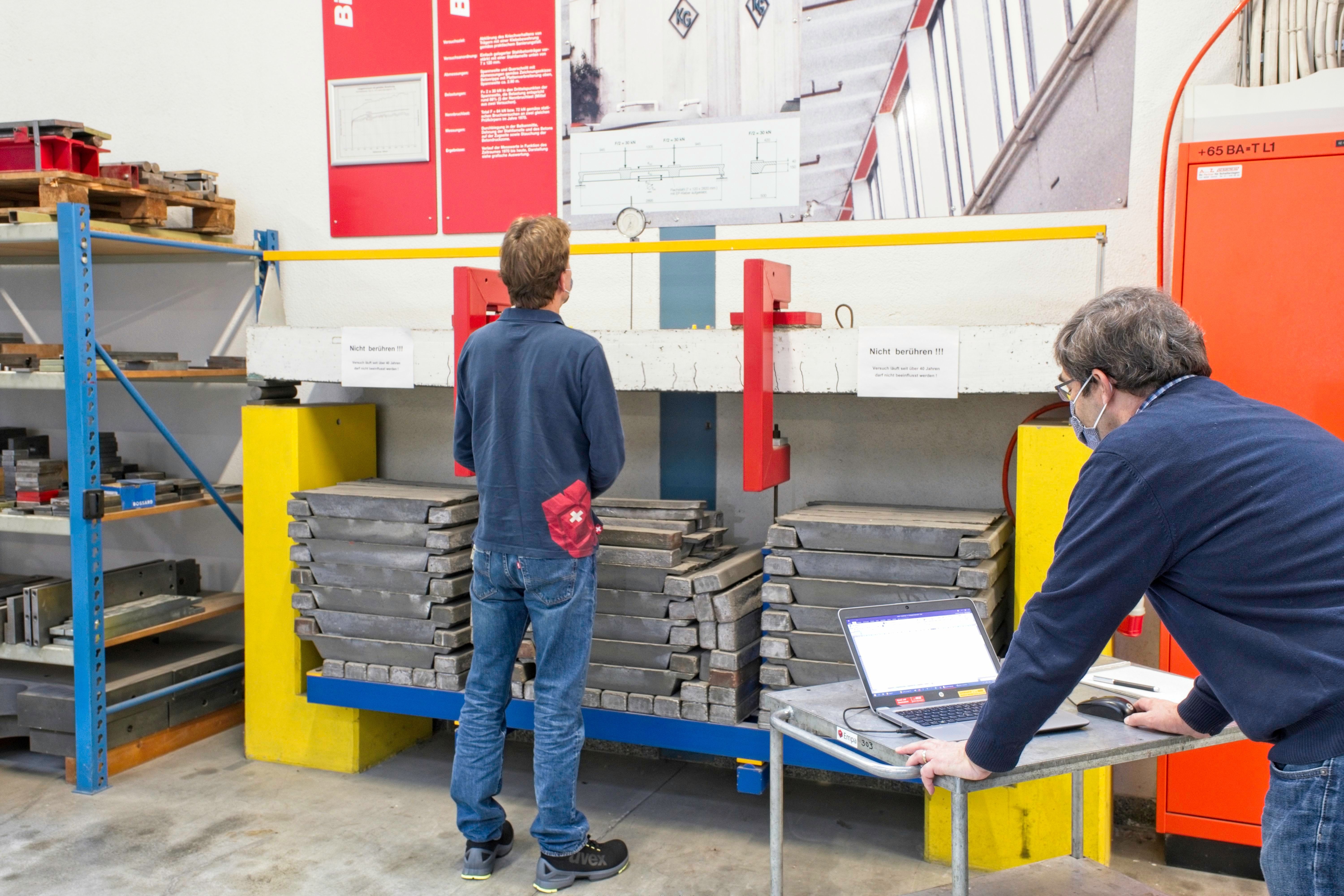 For many years now, Empa's "Structural Engineering" lab has therefore been developing and researching new, simple and inexpensive reinforcement methods using modern materials such as epoxy resins, carbon fiber reinforced plastics and shape memory alloys. The long-term test on reinforced concrete parts reinforced with bonded steel plates is a typical example of this. The studies carried out at Empa and the long-term test on steel plates fixed with epoxy resin adhesive, which is unique in the world, have contributed to the fact that adhesive reinforcement as a reinforcement method is now state of the art and that engineers have confidence in this method of construction.