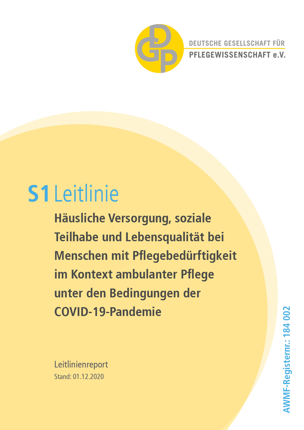 Unter Federführung der Deutschen Gesellschaft für Pflegewissenschaft e.V. (DGP) wurde die S1-Leitlinie zu „Häusliche Versorgung, soziale Teilhabe und Lebensqualität bei Menschen mit Pflegebedürftigkeit im Kontext ambulanter Pflege unter den Bedingungen der COVID-19 Pandemie“ entwickelt.