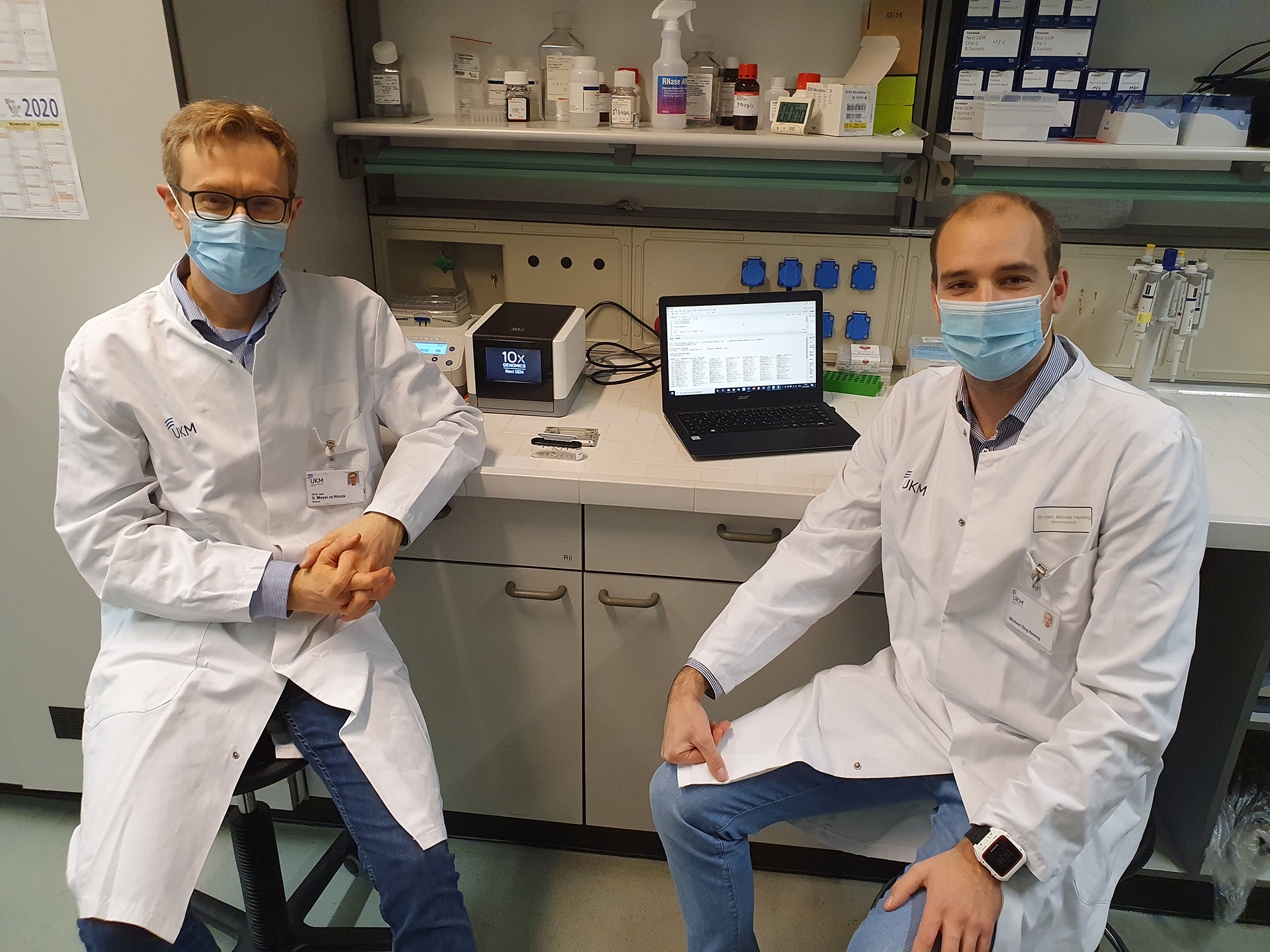 Die standortübergreifende Arbeitsgruppe machte sich die moderne Methode der Einzelzell-Transkriptomik zunutze. Mit ihr wird die Expression tausender Gene auf Einzelzellebene gleichzeitig untersucht. „So konnten wir die Immunantwort von Neuro-COVID im Nervenwasser in unmittelbarer Nähe zum Gehirn im Detail charakterisieren“, erläutert Privatdozent Dr. Gerd Meyer zu Hörste, Oberarzt in der Klinik für Neurologie am Universitätsklinikum Münster und Letztautor der neuen Studie. „Wir haben in einer Gruppe von 102 COVID-19-Patienten diejenigen identifiziert, die neurologische Symptome entwickelten und die aus diagnostischer Sicht eine Nervenwasserentnahme benötigten“, so Privatdozent Dr. Dr. Mark Stettner, Oberarzt der neurologischen Universitätsklinik in Essen, der zusammen mit Meyer zu Hörste die Studie leitete.