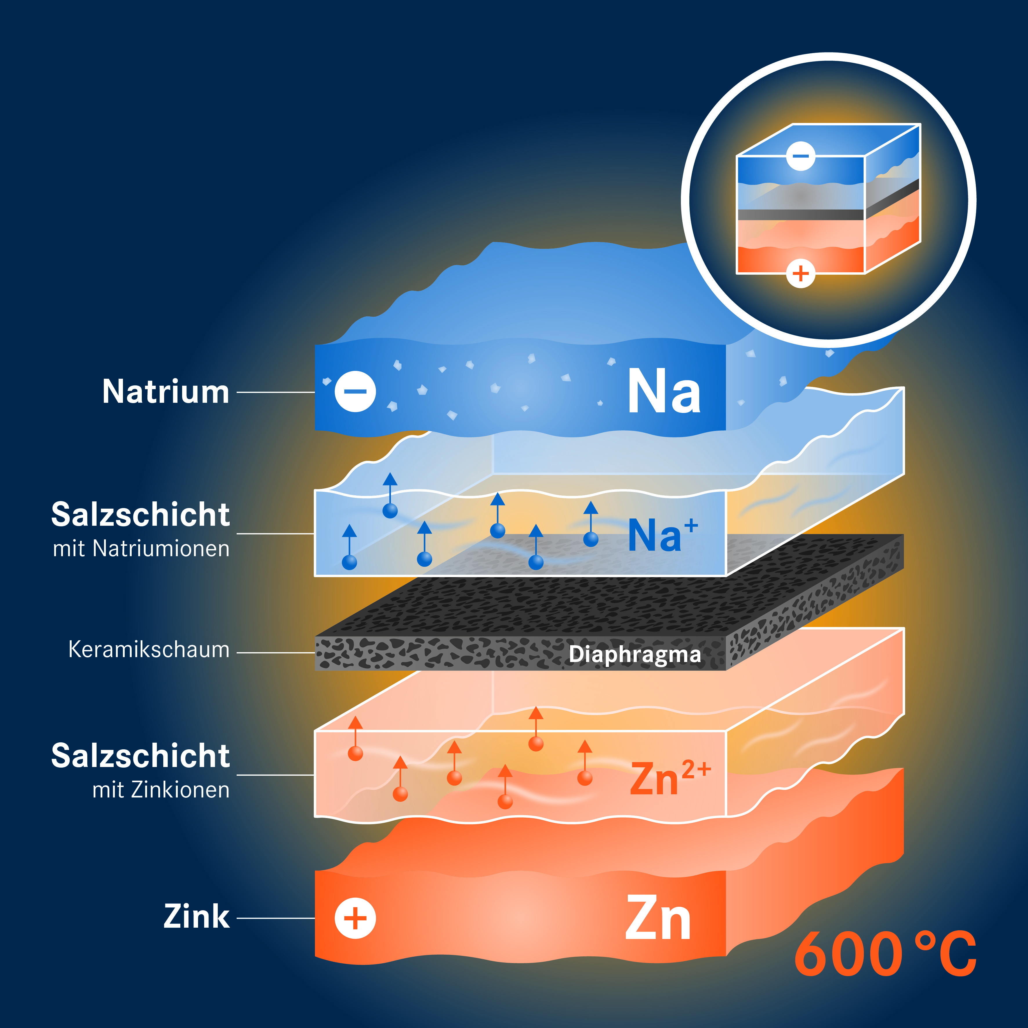 Deshalb gehen er und seine Kollegen einen anderen Weg. „Bei den Aktivmaterialien setzen wir auf Natrium und Zink“, erklärt sein Kollege Dr. Norbert Weber. Das hat ganz praktische Gründe. Natrium ist das sechsthäufigste Element auf der Erde und in großen Mengen verfügbar. Als Bestandteil verschiedener Salze sind zum Beispiel in jedem Liter Meerwasser etwa elf Gramm des Alkalimetalls gelöst. Zink ist zwar seltener, die weltweit verfügbaren Zinkressourcen sind aber dennoch gewaltig. Und während Lithium heute vor allem aus China, Australien oder Chile importiert werden muss, verfügt Europa über eigene aktive Zinkminen. Das, so Weber, würde erheblich dazu beitragen, die Abhängigkeit europäischer Energieprojekte von anderen Ländern zu verringern.