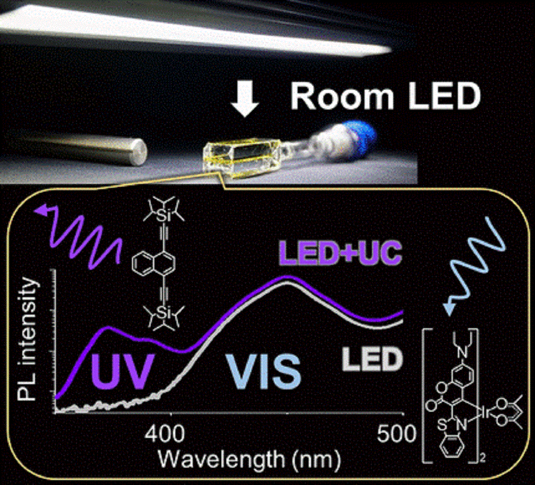 Fluoreszierende Farbstoffe absorbieren Licht bei kürzeren Wellenlängen (hohe Energie, z.B. blau) und senden Licht bei längeren Wellenlängen aus (geringe Energie, z.B. rot). Der umgekehrte Vorgang, die Aufwärtsumwandlung von Licht, ist viel schwieriger zu erreichen. Hierfür wird ein Fluoreszenzfarbstoff mit Strahlung im sichtbaren Bereich angeregt, emittiert aber im ultravioletten Bereich. Solche Farbstoffe könnten dazu genutzt werden, um hochenergetische katalytische Reaktionen wie die solare Wasserspaltung mit normalem Tageslicht als Energiequelle deutlich effizienter zu betreiben, indem sie den Bereich der verfügbaren Anregungsenergie erweitern.