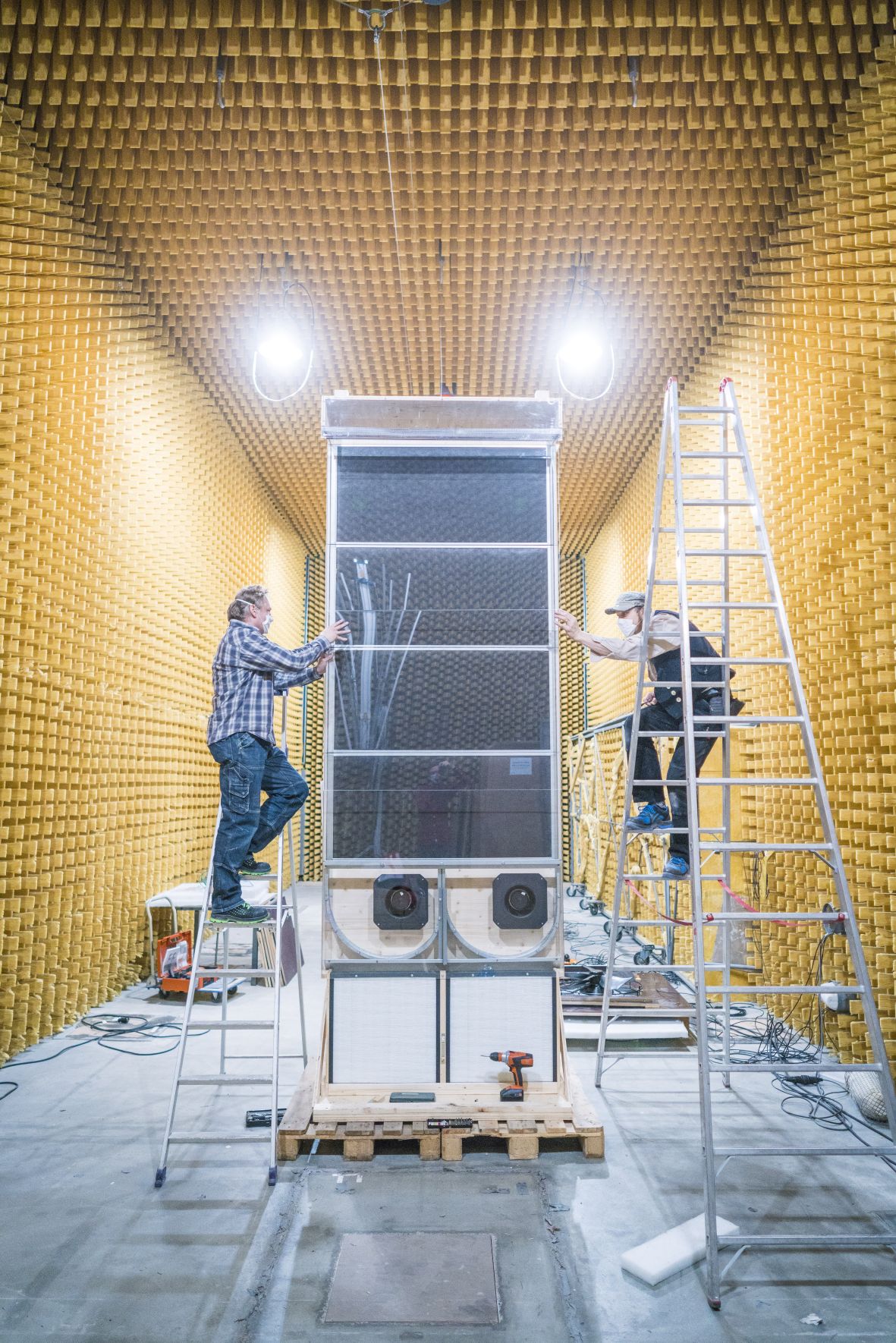 Menschen, die an Kassen oder Schaltern arbeiten, tragen ein besonders hohes Risiko, an COVID-19 zu erkranken. Übliche Hygienemaßnahmen wie das Tragen von Masken oder installierte Plexiglaswände bieten nur bedingten Schutz, da die Viren etwa hinter die Abschirmung gelangen können. Um an diesen Arbeitsplätzen die Ansteckungswahrscheinlichkeit zu minimieren, entwickelte das Fraunhofer IBP den »Schutzhimmel« – eine Art Luftschleuse, die betroffene Mitarbeiter*innen von der übrigen Raumluft abschirmt. Das Luftfiltergerät von der Größe eines Raumluftbefeuchters wird unabhängig von der Gebäudesteuerung betrieben und ist durch Rollen flexibel einsetzbar. Dabei saugt der Schutzhimmel die Raumluft an, filtert diese durch einen für Viren geeigneten, sogenannten »High Efficiency Particulate Air Filter (HEPA)« und führt sie dann über einen Luftauslass direkt über dem Arbeitsplatz zurück. Durch den steten Luftstrom wird ein Eindringen der Umgebungsluft in den Arbeitsbereich verhindert.