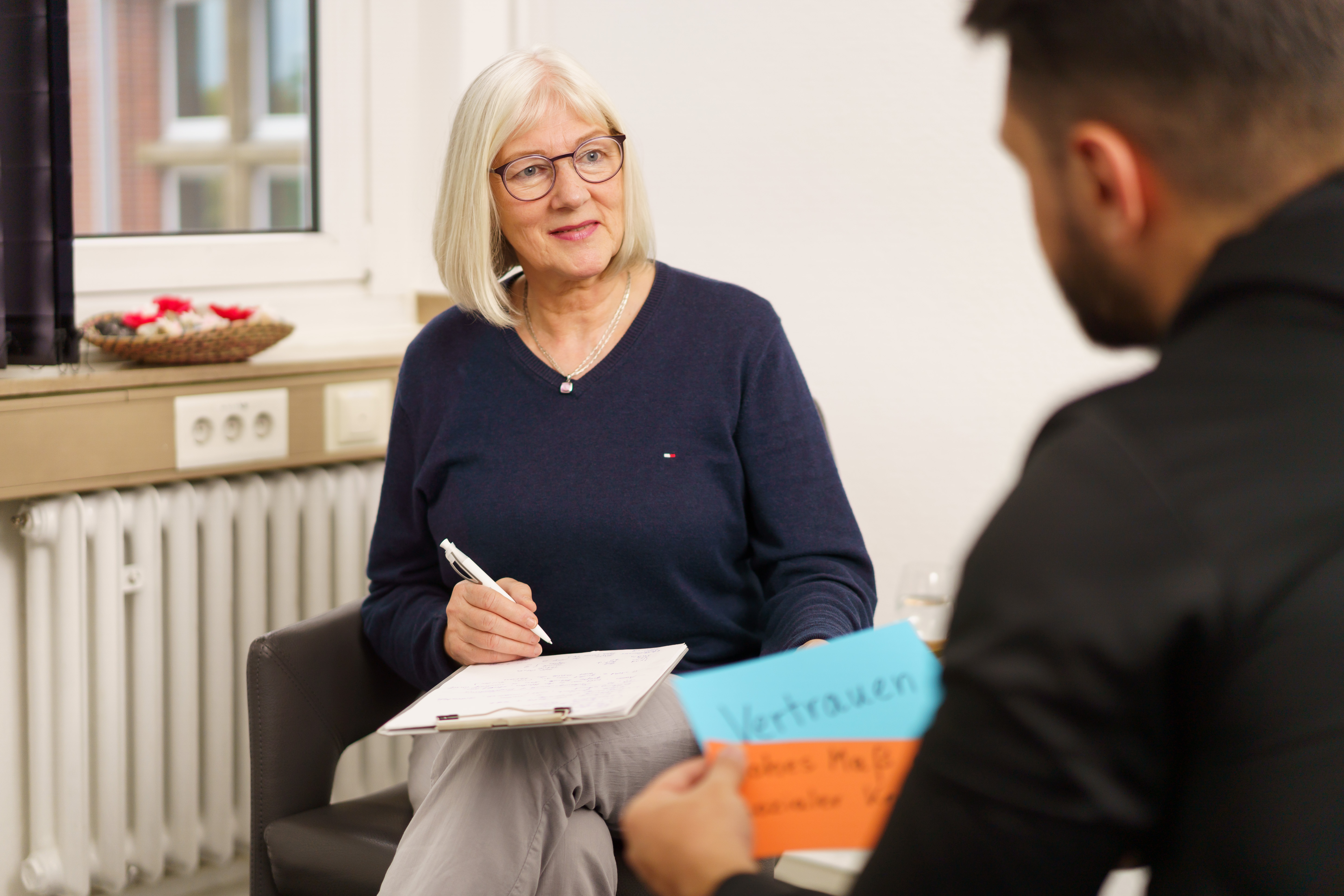 Neben diesem notwendigen Erwerb von Sprach- und Fachkenntnissen nimmt das THGA-Angebot – anders als viele andere – auch die berufliche Integration in den Blick: Im Competence Empowerment Center (CEC) der Hochschule werden Menschen mit Fluchterfahrung durch geeignete Maßnahmen bei der Orientierung auf dem deutschen Arbeits- und Ausbildungsmarkt unterstützt, z. B. durch die Vorbereitung von Bewerbungsgesprächen und die Vermittlung von Praktika. In Anbetracht der teilweise traumatischen Erfahrungen, die die Geflüchteten gemacht haben, ist nicht zuletzt die dritte Komponente der THGA-Aktivitäten von entscheidender Bedeutung: Ein in Deutschland einzigartiges Integrationsmanagement flankiert die Aktivitäten von PPA und CEC. In kultur- und traumasensiblen Beratungen unterstützt Integrationsmanagerin Antje Azraq die Geflüchteten dabei, Ängste zu reduzieren und ihre innere Sicherheit zu stärken. Immer wieder greift sie bei emotional stark belastenden Themen auch auf Arabisch, die Herkunftssprache der meisten ihrer Klientinnen und Klienten, zurück, um ihnen die Beratungssituation zu erleichtern; Englisch und Französisch gehören ebenfalls zu ihrem Repertoire. In interkulturellen Gesprächskreisen haben die Geflüchteten darüber hinaus die Möglichkeit, sich einer Gruppe zu öffnen, Verständnis für den Anderen zu entwickeln und damit auch emotional und sozial im neuen Land anzukommen – denn erst dann kann Integration vollständig gelingen.