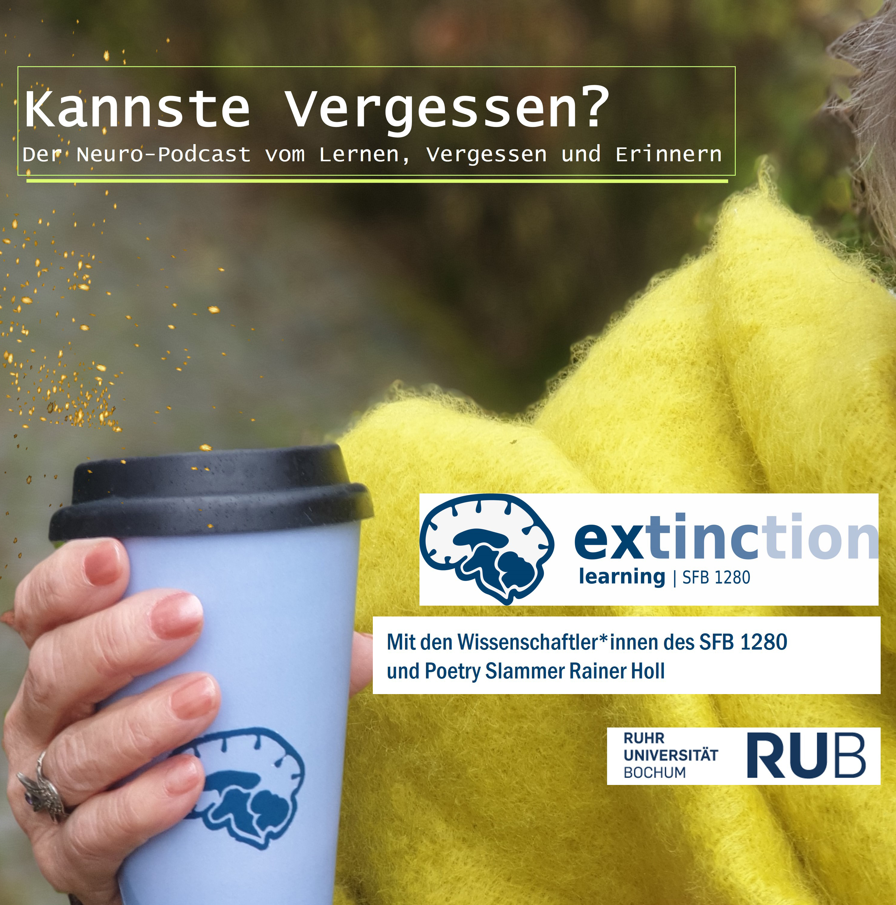 Wie wird man Gelerntes wieder los, zum Beispiel schlechte Angewohnheiten oder Ängste? Das will der Autor, Moderator und Poetry Slammer Rainer Holl wissen und verstehen. Dazu interviewt er Wissenschaftlerinnen und Wissenschaftler des Sonderforschungsbereichs „Extinktionslernen“ der Ruhr-Universität Bochum (RUB) zu ihrer Forschung. Seltene Einblicke und faszinierende Erkenntnisse aus Psychologie, Biopsychologie und Neurowissenschaften, einen Blick hinter die Kulissen des wissenschaftlichen Alltags, garniert mit Slam-Poetry gibt es einmal im Monat auf der Webseite des Sonderforschungsbereichs (https://sfb1280.ruhr-uni-bochum.de/podcast) und über verschiedene Podcastplattformen (siehe unten).