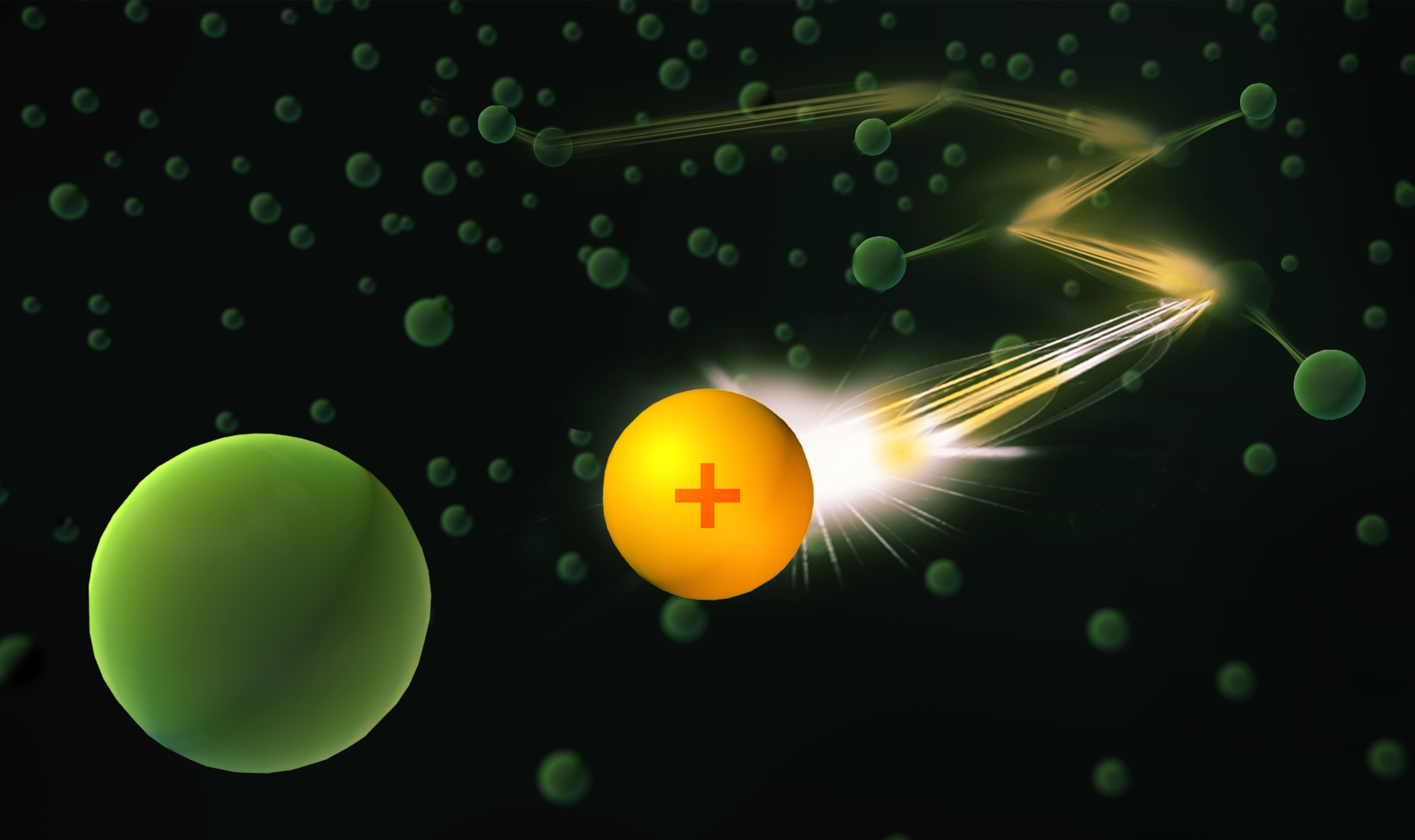 Das Team nutzt dafür ein sogenanntes Bose-Einstein-Kondensat (BEC). In diesem exotischen Quantenzustand befinden sich die Atome in einer extrem dichten und ultrakalten Wolke. Mit ausgeklügelter Lasertechnik präparierten sie im BEC ein einzelnes Rydbergatom. In diesem Riesenatom befindet sich das äußerste Elektron tausendmal weiter weg vom Kern als im Grundzustand und ist nur noch schwach an den Kern gebunden. Mit einer speziellen Sequenz von elektrischen Feldpulsen entreißen die Forscher dem Atom dieses Elektron. Das vormals neutrale Atom verwandelt sich in ein positiv geladenes Ion, das bei diesem Kraftakt trotzdem ultrakalt bleibt. Im Anschluss wird das Ion mit Hilfe elektrischer Felder kontrolliert durch die dichte Atomwolke des BECs gezogen. Das Ion nimmt in dem elektrischen Feld an Fahrt auf und stößt auf seinem Weg mit anderen Atomen zusammen, wird abgebremst und durch das elektrische Feld wieder beschleunigt.