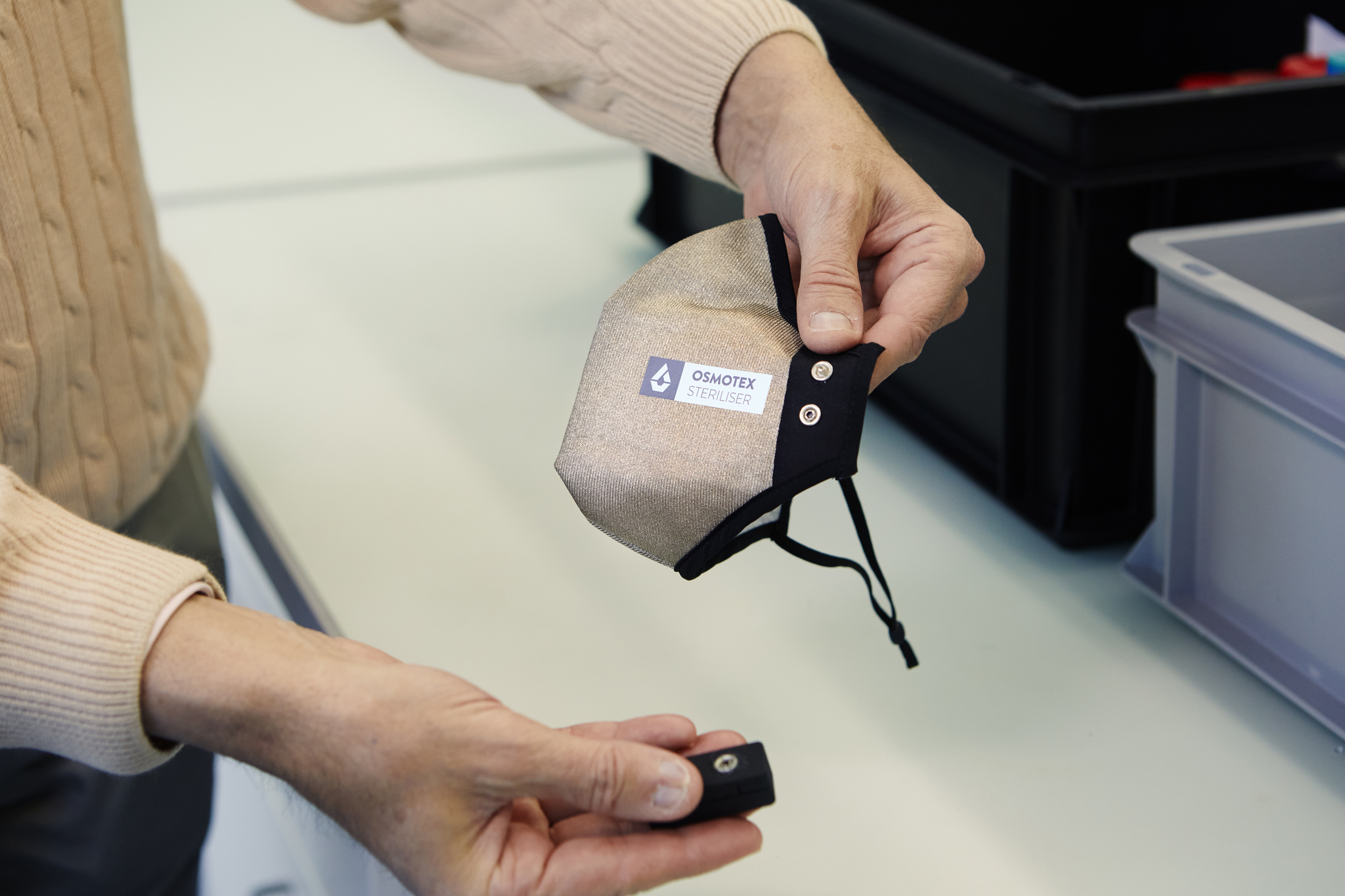 Laut Osmotex-Cheftechnologe Trond Heldal sind die bisherigen Resultate vielversprechend. «Unsere Sterilizer Mask wäre die erste Maske weltweit, die sich elektrochemisch sterilisieren lässt – und zwar rasch und zuverlässig. Das entsprechende Verfahren haben wir bereits patentieren lassen», erklärt Heldal. «Dank dem wissenschaftlichen Knowhow der ZHAW konnten wir die Maske optimieren und innert kurzer Zeit zur Marktreife bringen.» Das gemeinsam von ZHAW-Chemiker Chahan Yeretzian und Osmotex initiierte Projekt wird von der Förderagentur des Bundes Innosuisse mit 902'000 Franken unterstützt und verfügt über ein Budget von 1.7 Millionen Franken. Während sich Chahan Yeretzians Team der Sicherheit der Maske widmet, ist das Team von ZHAW-Mikrobiologe Martin Sievers für die Effizienz und jenes von ZHAW-Chemiker Christian Adlhart für das Material zuständig. «Nachdem wir die Wirksamkeit der elektrochemischen Technologie mit einer Studie im Sommer 2020 dokumentiert haben, arbeiten wir nun daran, diese Technologie für sterile Schutzmasken zu optimieren und alltagstauglich zu machen», so Yeretzian.