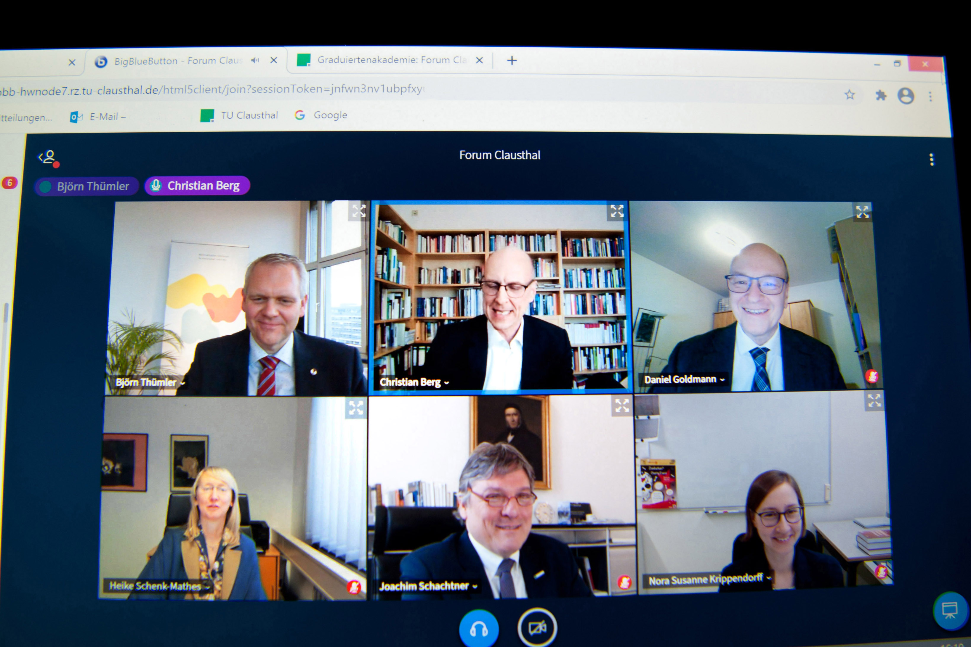 An den Impuls aus Hannover schloss sich eine Podiums- und Plenumsdiskussion an. Neben dem Minister, TU-Präsidenten und Moderator bildeten Professorin Heike Schenk-Mathes, Clausthaler Vizepräsidentin für Gleichstellung und Förderung des wissenschaftlichen Nachwuchses, Professor Daniel Goldmann und die Nachwuchswissenschaftlerin Nora Krippendorff das virtuelle Podium. In einem lebendigen Austausch wurden beispielsweise die hohe Reputation der Lehre und die Bedeutung der Wissenschaftskommunikation herausgestellt.