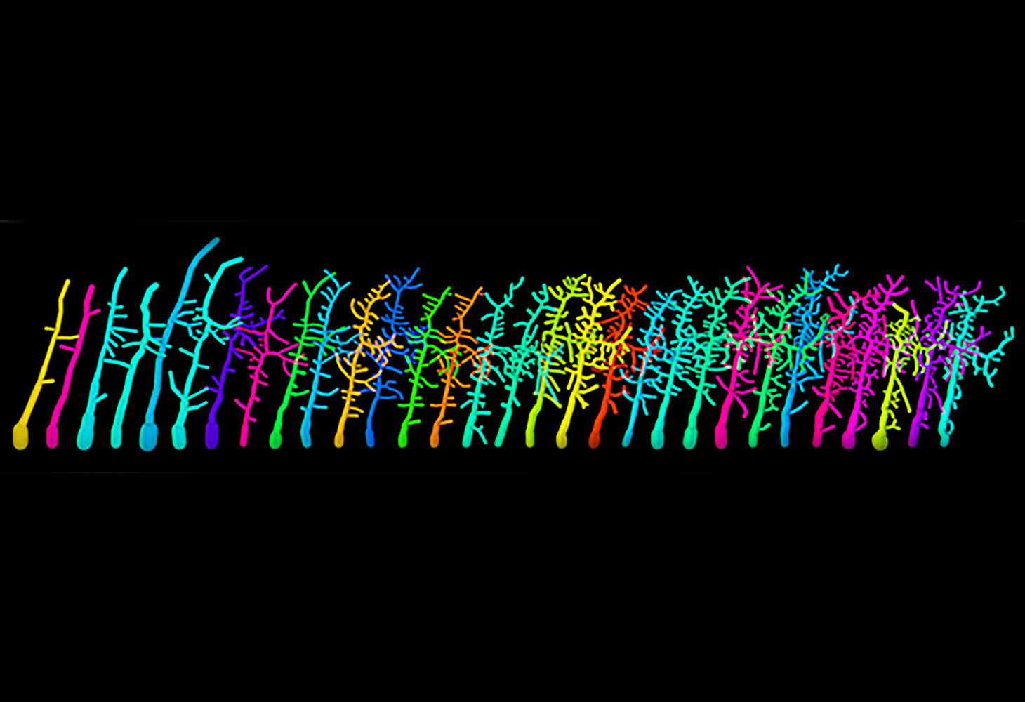 "Having established a putative functional role of the retraction phase, the next question was: on what principles does it operate? How does it improve the branching structure to maintain the best possible functionality of the dendrites?", says André Ferreira Castro. To find out by which rules dendrites grow and retract, he and his colleagues at the Cuntz Lab created a computer model based on the time-lapse data that simulates the differentiation process described above. They added three variables: number of branch points, total length, spanning area. "Every time we compared the computer-generated data to the real data, it matched. When we took out one of the variables, it did not."
