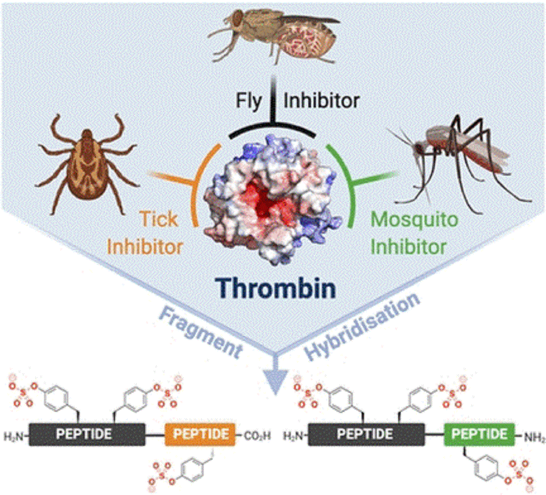 Auf der Suche nach stärkeren Wirkstoffen nahmen nun der Chemiker Richard J. Payne von der Universität Sydney (Australien) und ein internationales Team von Wissenschaftler:innen die Wirkungsweise der Thrombin-Hemmstoffe unter die Lupe. Natürliche Wirkstoffe aus Insektenspeichel blockieren am Thrombin normalerweise zwei von drei wichtigen Bereichen, nämlich die Stelle der Substratspaltung plus eine von zwei Regionen auf der Oberfläche des Enzyms, die für die Regulation der Gerinnung wichtig sind.