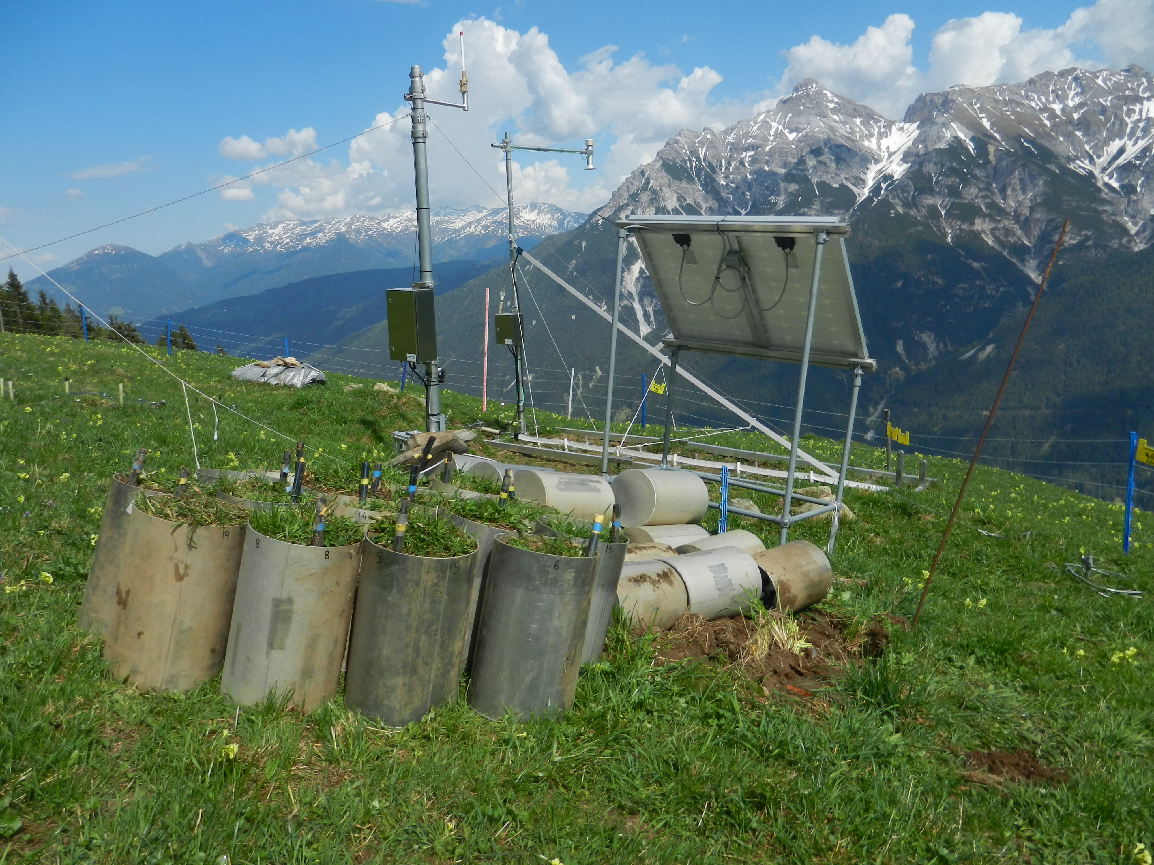 Ein Team von Wissenschaftler*innen um Eliza Harris und Michael Bahn von der Forschungsgruppe Funktionelle Ökologie an der Universität Innsbruck konnte nun im Rahmen des vom FWF geförderten Projekts NitroTrace diese N2O-Produktions- und Verbrauchswege, die innerhalb des Stickstoffkreislaufs ablaufen und letztlich zur Emission dieses Treibhausgases führen, im Detail nachvollziehen. In einer Versuchsanordnung im botanischen Garten der Universität Innsbruck wurden 16 intakte Grünlandmonolithe von der Kaserstattalm im Tiroler Stubaital, einem Standort für Langzeit-Ökosystemforschung (LTER), untersucht. Die Bodenblöcke wurden dabei extremer Trockenheit und einer anschließenden Wiederbefeuchtung ausgesetzt. Diese Wetterbedingungen spiegeln die klimatischen Veränderungen wider, denen viele Regionen der Erde, darunter auch die Alpen, zunehmend ausgesetzt sind. „Unser Ziel war es, den Nettoeffekt von Trockenheit und Wiederbefeuchtung auf den Entstehungsprozess von N2O und seine Emissionen zu quantifizieren, der derzeit weitgehend unerforscht ist“, sagt Eliza Harris.