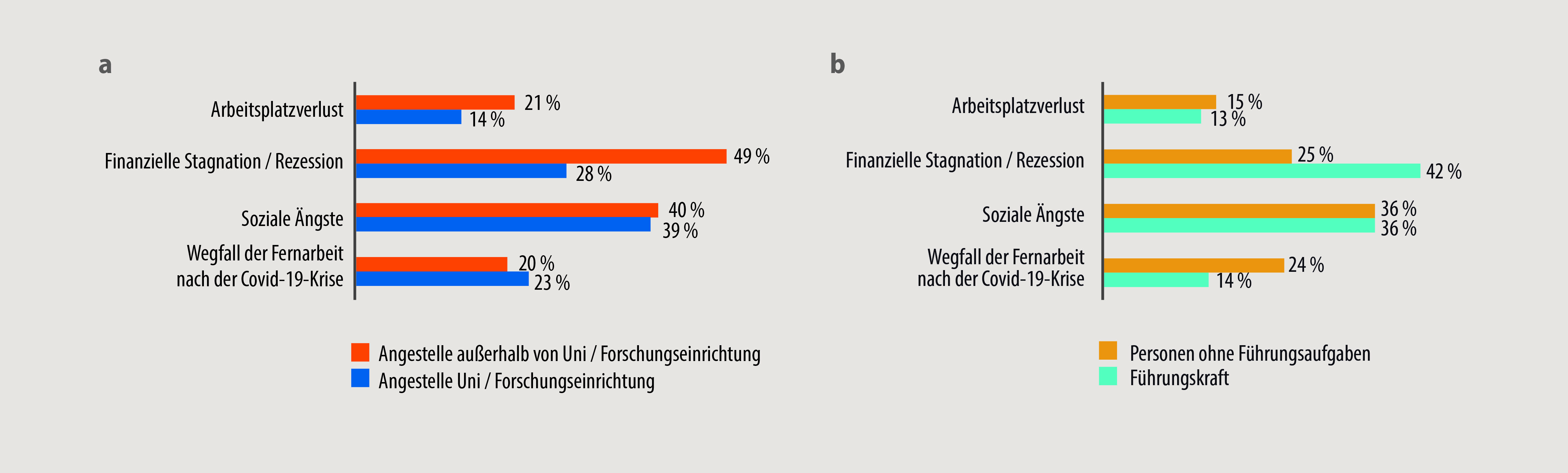40 Prozent aller fürchteten den Verlust ihres Arbeitsplatzes. Viele (35 Prozent) sorgten sich allerdings auch um den Wegfall der Möglichkeit, nach der Covid-19-Krise weiter im Homeoffice arbeiten zu können. Das betraf fast die Hälfte der weiblichen Akademiker in Europa und 26 Prozent der männlichen.