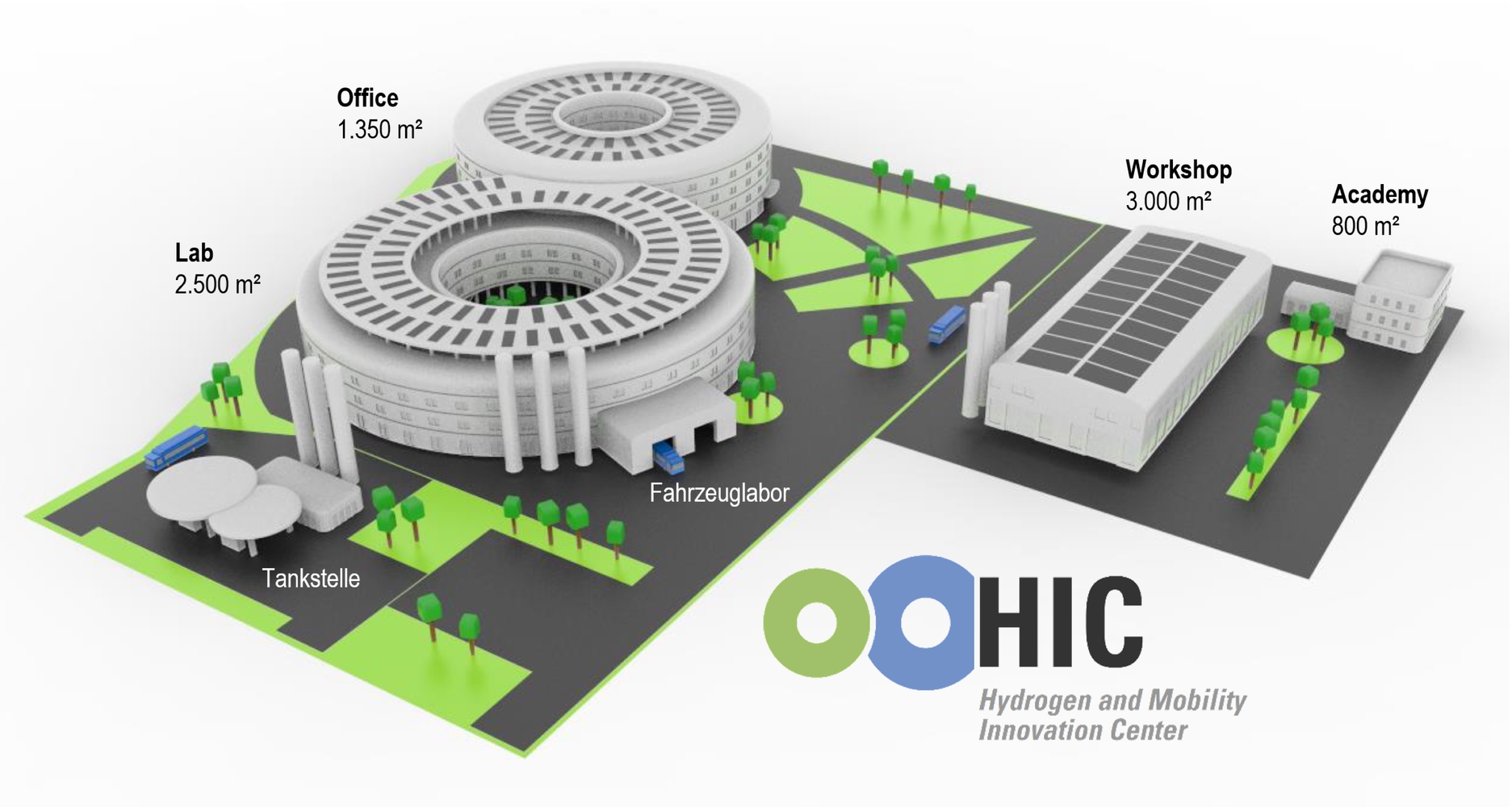 Chemnitz steht mit dem HIC vor dem Schritt vom Forschungsstandort zum Wertschöpfungsstandort für Wasserstoff- und Brennstoffzellen-Technologien. Das Innovationscluster HZwo e.V., die sächsische Kompetenzstelle rund um die Themen ›Brennstoffzellen‹ und ›grüner Wasserstoff‹, koordiniert die Bewerbung des HIC und bündelt die Stärken der Akteure vor Ort und in der Region. Gemeinsam mit der TU Chemnitz, der TU Dresden, der Fraunhofer-Gesellschaft, BMW Leipzig, Vitesco Technologies und vielen weiteren Industriepartnern sollen am Standort Chemnitz ein großes Fahrzeuglabor, ein umfangreiches Wasserstoff-Zertifizierungszentrum, Prüfstände für Brennstoffzellen sowie ein Fortbildungszentrum und ein Experience Lab entstehen. Industrieunternehmen, Mittelständler und Automobilzulieferer aus ganz Deutschland hätten dort die Möglichkeit, die von ihnen entwickelten Brennstoffzellen, Antriebe und Tanktechnologien bis zum Gesamtfahrzeug bedarfsgerecht zu testen und weiterzuentwickeln. Der Fokus liegt dabei auf der Mobilität von morgen auf der Straße und der Schiene.