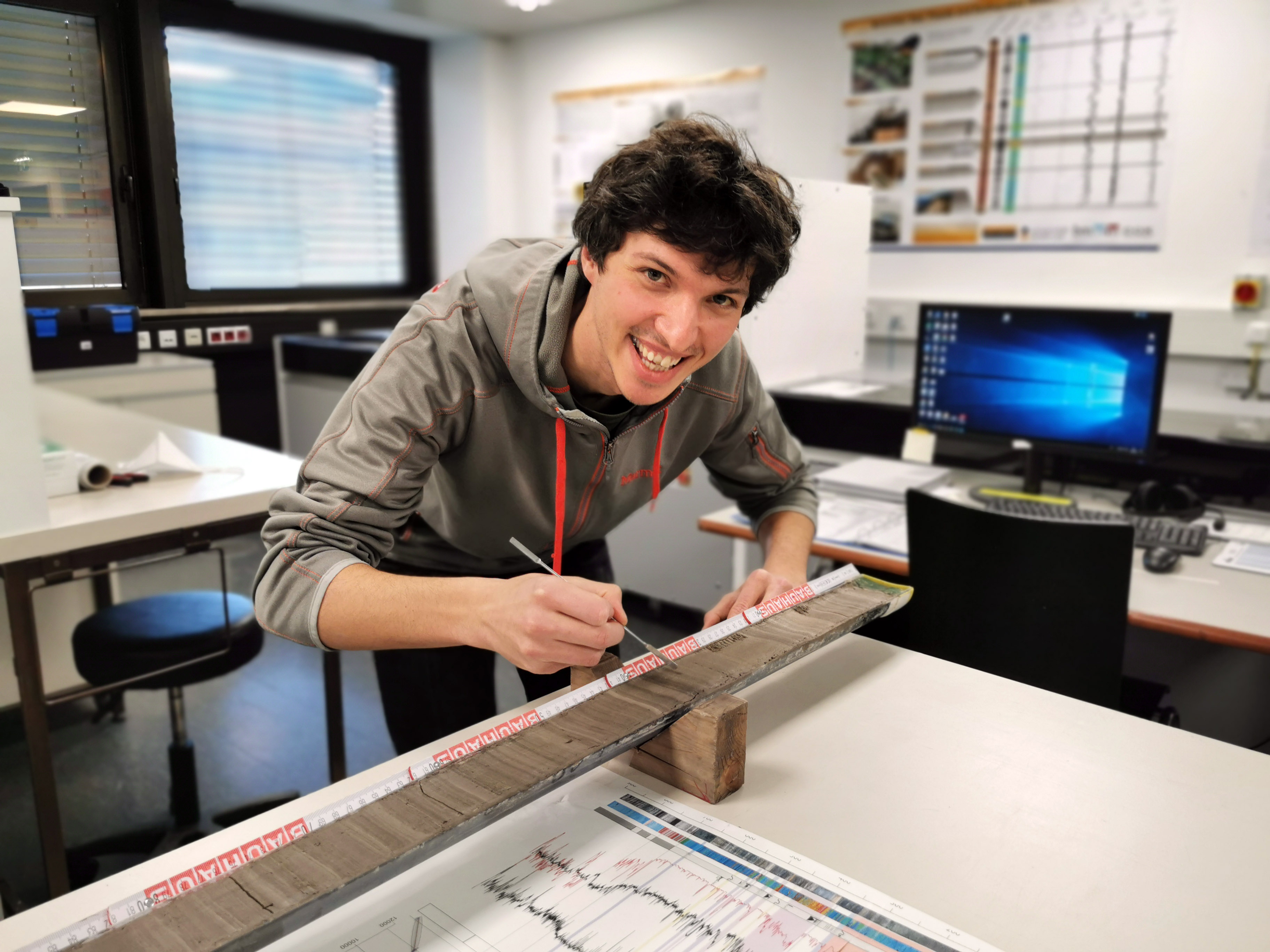 Many steep valleys in the European Alps show the relicts of large rockslides, during which several hundreds of million cubic metres of rocks get instable, collapse and impact everything on their path. “For most of these, we still do not know how they are caused, because these rockslides occurred long before the start of written history in the region about 1000 years ago,” says Patrick Oswald, PhD student at the Department of Geology of the University of Innsbruck and lead author of the study. “Curiously, many of these ancient rockslides occurred together in clusters, meaning they are found in small regions and have a rather comparable age”. This enigmatic pattern has puzzled researchers over the last decades and fuelled some intense debates. Some experts propose that abrupt climate shifts can degrade rock slopes towards unstable conditions, whereas others think that strong earthquake shaking is the main driver. Such problems are notoriously difficult to solve, as the object of study − the rock slope − has collapsed and cannot be investigated anymore. Therefore, the research team decided to turn the perspective around and searched underwater for answers to these questions. “The different sediment layers that are deposited year after year on the bottom of our lakes and oceans provide long-term information on climatic and ecological conditions, but also record the disturbances induced by strong earthquake shaking that happened long ago, in the prehistoric past,” says Michael Strasser, head of the Sedimentary Geology working group at the Department of Geology and the Austrian Core Facility for scientific core analysis at the University of Innsbruck.