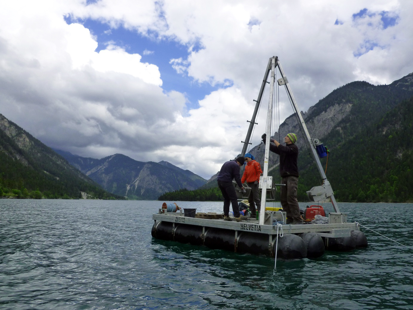 In zahlreichen Alpentälern mit steilen Flanken finden sich die Überreste großer Bergstürze im Ausmaß mehrerer hundert Millionen Kubikmeter Gestein. „Wie sie entstanden sind, ist oft schwer zu rekonstruieren, da sie vor mehreren Tausend Jahren stattfanden und somit keine historischen Dokumente darüber vorliegen“, erklärt Patrick Oswald, Doktorand in der Arbeitsgruppe für Sedimentgeologie am Institut für Geologie der Universität Innsbruck und Hauptautor der Studie. „Interessanterweise traten viele dieser alten Bergstürze auf eher kleinem Raum auf und haben ein ähnliches Alter, bildeten also eine Art ‚Cluster‘.“ Dieses rätselhafte Muster sorgt in der Fachwelt bereits seit vielen Jahren für zahlreiche Diskussionen rund um mögliche Ursachen. Neben abrupten klimatischen Veränderungen gelten auch Erdbebenerschütterungen als potenzielle Auslöser. Da das „Untersuchungsobjekt“ in Form der kollabierten Felshänge nicht mehr vorhanden ist, entschied das Forscher-Team am Institut für Geologie die Perspektive im wahrsten Sinn des Wortes umzudrehen – und suchte unter Wasser nach Antworten auf diese Fragen. „Die einzelnen Sediment-Schichten, die sich Jahr für Jahr am See- oder Meeresgrund ablagern, geben Aufschluss über klimatische und ökologische Bedingungen, die weit über historische Aufzeichnungen hinaus reichen. In den Sedimentabfolgen können wir aber auch Deformationsstrukturen finden, die durch vergangene Starkerdbeben ausgelöst wurden“, sagt Michael Strasser, Leiter der Arbeitsgruppe für Sedimentgeologie am Institut für Geologie und der Austrian Core Facility für wissenschaftliche Bohrkernanalysen an der Universität Innsbruck.