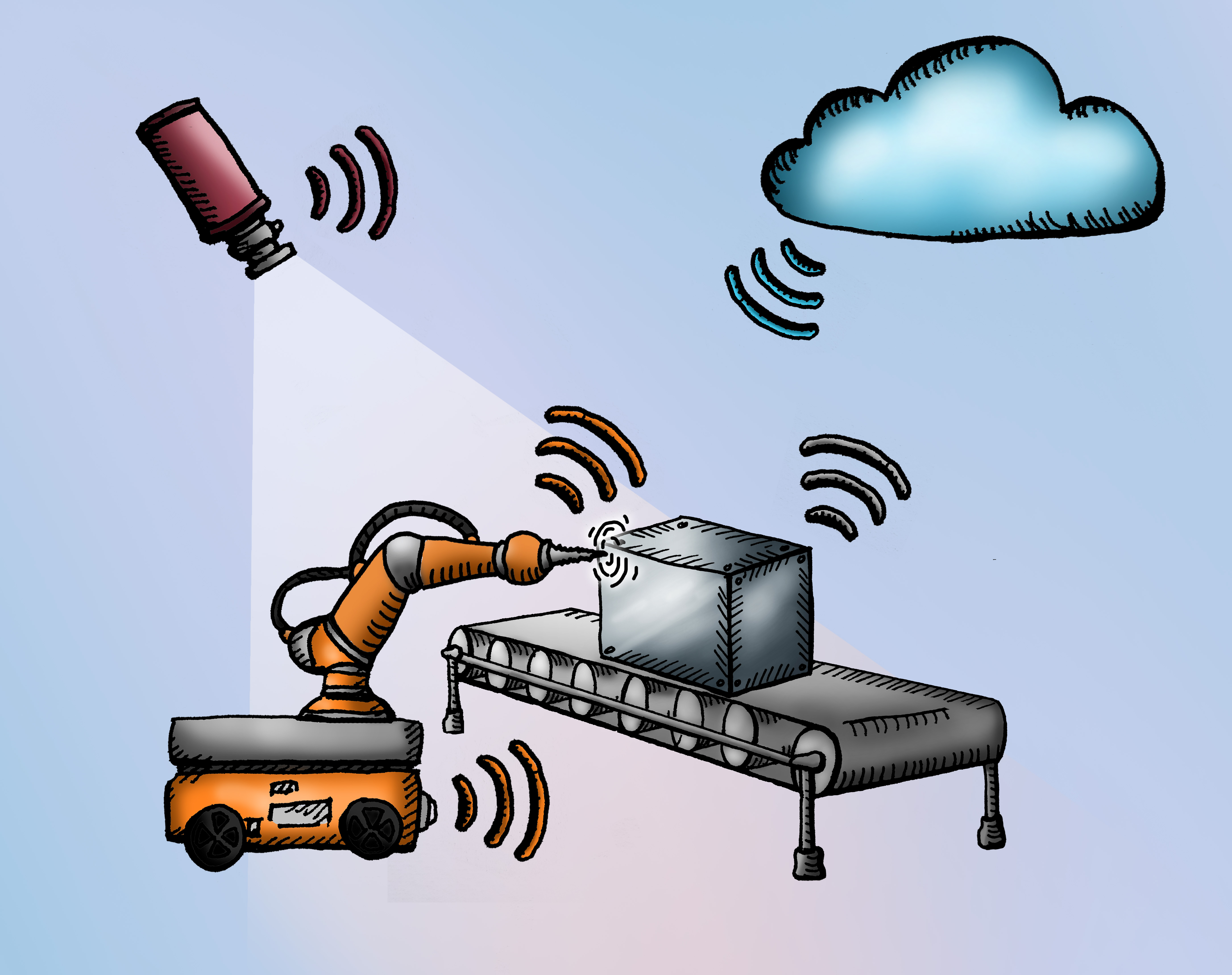 Der flächendeckende Einsatz intelligenter mobiler Roboter bietet der Industrie zukünftig die Chance auf einen nachhaltigen Innovationsschub. Neue, agile Produktionsmethoden und Fabrikdesigns wären möglich. Assistenzroboter und untereinander vernetzte und kooperierende flexible Robotersysteme könnten vielerorts auch zusammen mit dem Menschen arbeiten. Sie würden die Mitarbeitenden auch außerhalb von Produktion und Logistik, etwa in der Pflege oder in Dienstleistungsbereichen bei schweren und ermüdenden Tätigkeiten oder bei Aufgaben mit besonders hohem Präzisionsanspruch entlasten. Doch bisher haben sich mobile Assistenzroboter im industriellen Umfeld nicht durchsetzen können. Eine wesentliche Herausforderung ist die vielseitige Einsatzmöglichkeit des Roboters für unterschiedlichste Tätigkeiten ohne bzw. mit minimalem Programmieraufwand. Zudem sind heutige Systeme zu langsam, um nur ansatzweise menschenähnliche Fähigkeiten, z.B. bei der Objekterkennung und -handhabung, aufzuweisen. Die Lösung bestünde in drahtlos vernetzten, verteilten Steuerungssystemen.