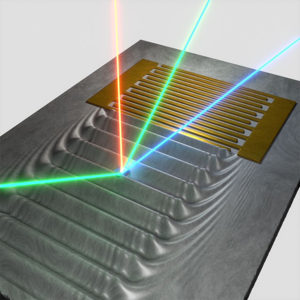 They combine dissimilar quantum systems to exploit their unique strengths while at the same time overcoming their individual shortcomings. ’In this field, vibrations of the crystal lattice are especially promising,’ explains Professor Hubert Krenner, who leads the study at the University of Augsburg. He adds: ’Phonons, as we physicist call these vibrations, stretch and compress literally any object that is embedded in the crystal and this way alter its physical properties.’ In their study the researchers employ nanometer-scale surface acoustic waves, SAWs, to induce vibrations of a single artificial atom, a so-called quantum dot, and thereby change the color of the emitted light. Dr Daniel Wigger, who investigates the coupling between quantum dots and phonons at the University of Münster and at Wrocław University of Science and Technology is excited: ’In our simulations we were able to almost perfectly reproduce the spectra measured in Augsburg by including the nanoscale sound waves like a phonon laser into our model.’ The reported research results are a milestone for the development of hybrid quantum technologies because the quantum dot emits single light quanta, so-called photons, that are precisely clocked by the sound wave. Dr Matthias Weiß, who completed his PhD at the Physics Institute in Augsburg last summer, adds: ’It is fascinating that the spectral lines of the quantum dots fabricated in Munich are so extremely sharp. This allowed us to observe how the spectral line was shifted by the tiny amount of energy of a single phonon.’