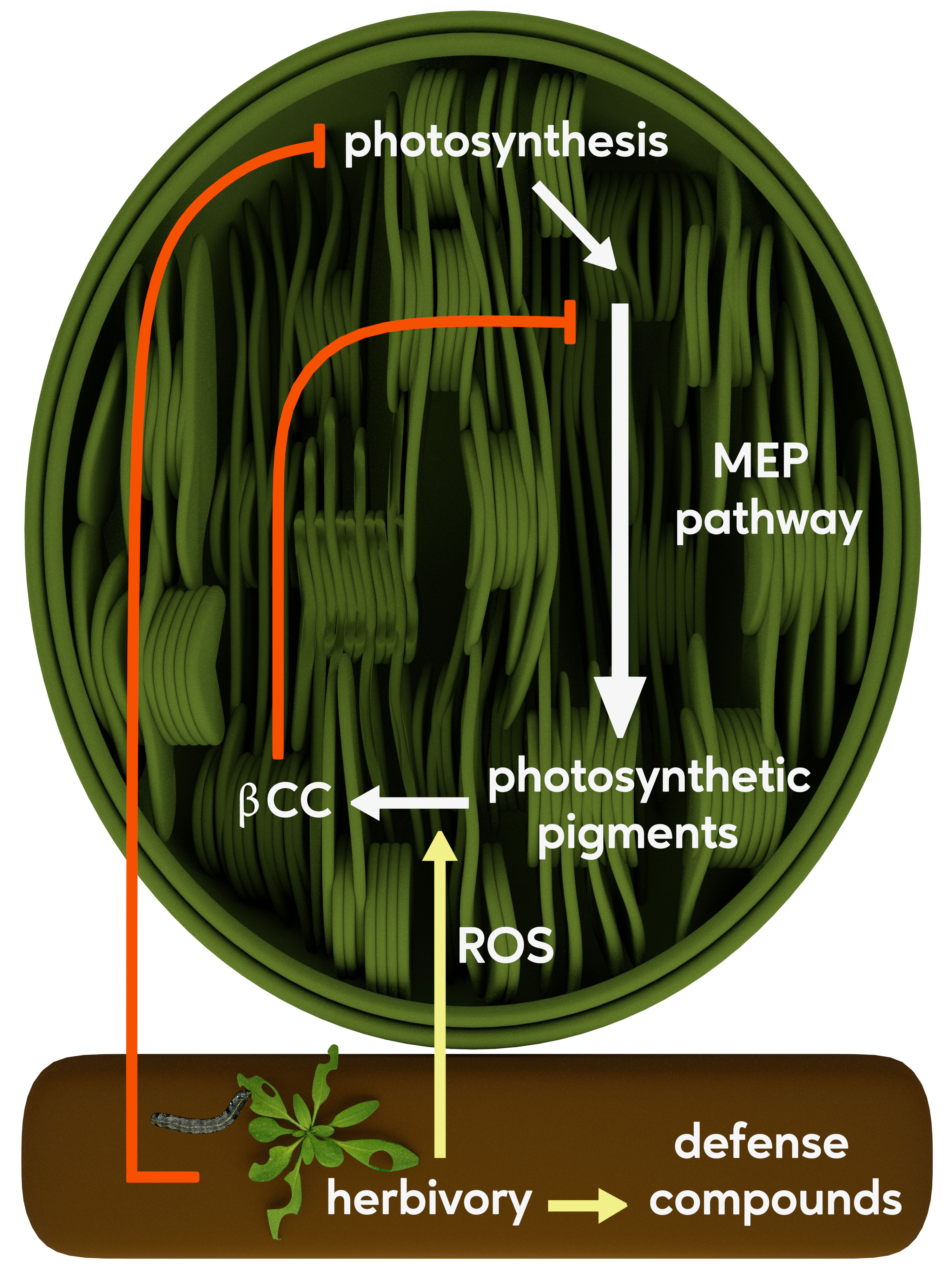 Mitra, S., Estrada-Tejedor, R., Volke, D. C., Phillips, M. A., Gershenzon, J., Wright, L. (2021). Negative regulation of plastidial isoprenoid pathway by herbivore-induced β-cyclocitral in Arabidopsis thaliana. Proceedings of the National Academy of Sciences of the United States of America, 118(10): e2008747118. doi:10.1073/pnas.2008747118
