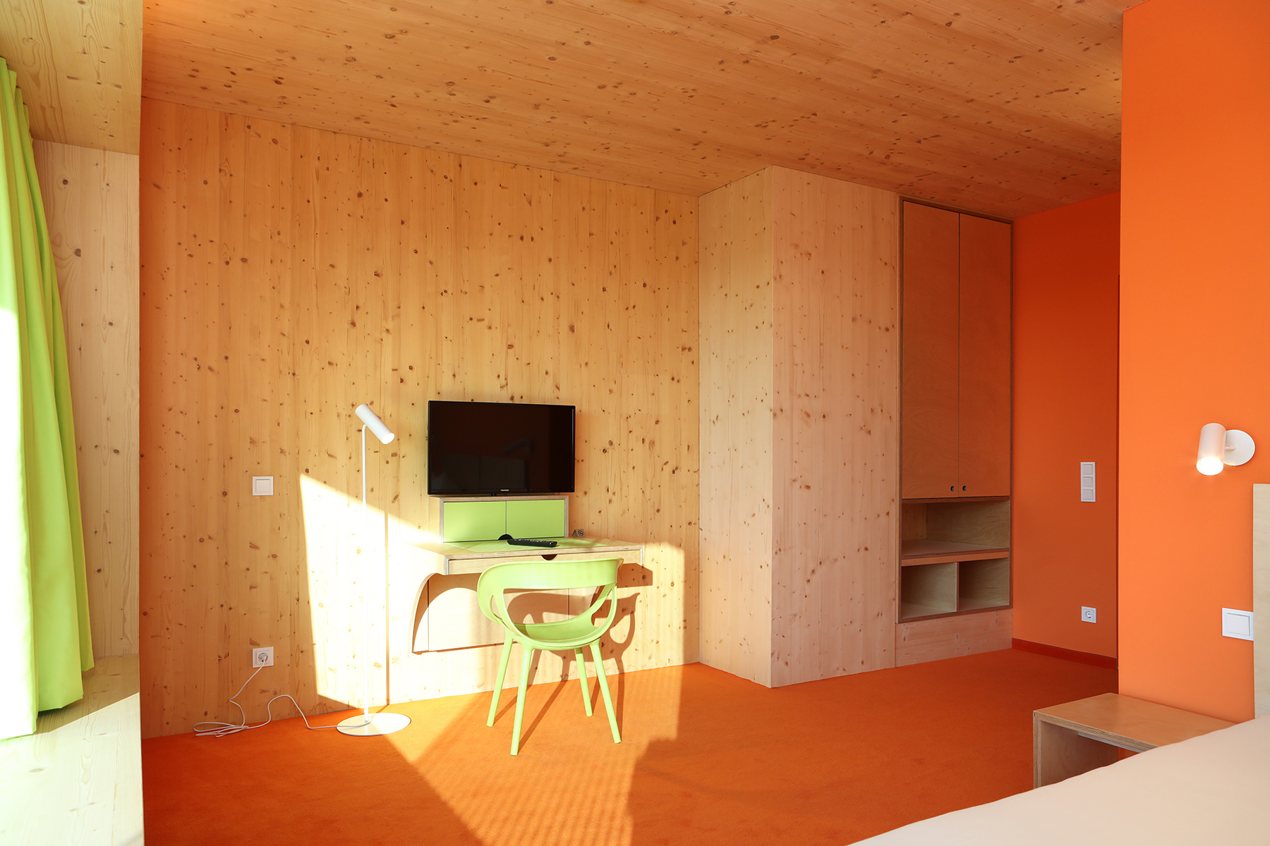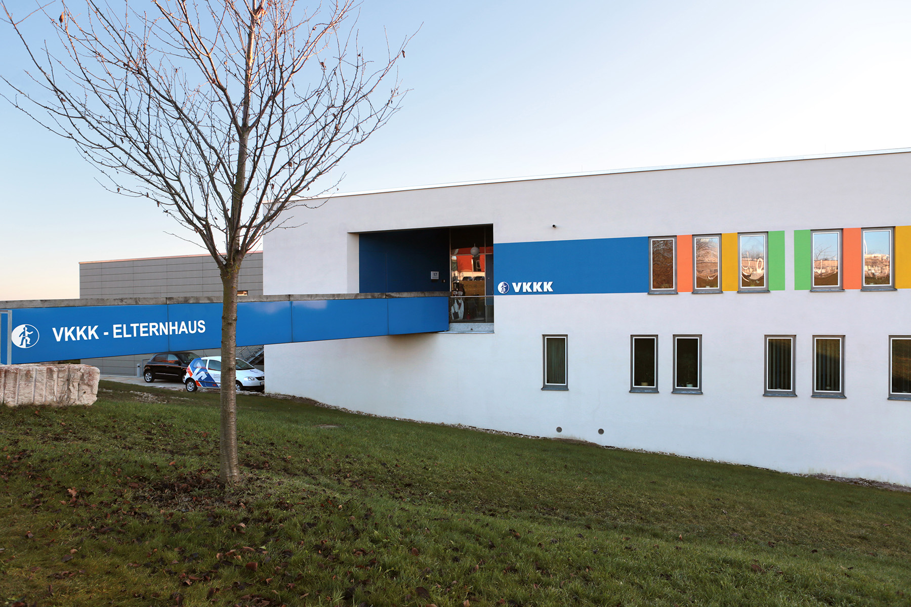 Wenn die kleinen und großen Patienten aufgrund ihrer Krankheit nicht im gewohnten heimischen Umfeld sein können, muss dieses eben ein Stück weit zu ihnen kommen. Das Patientenhaus der Leukämiehilfe und das VKKK-Elternhaus bieten für Angehörige kostengünstige Übernachtungsmöglichkeiten an. Beide Häuser befinden sich direkt auf dem Klinikgelände, sodass der Besuch am Krankenbett fußläufig möglich ist. Die lichtdurchfluteten und liebevoll eingerichteten, teils behindertengerechten Appartments sind mit Dusche und WC ausgestattet und lassen durch ihre großen Fenster ins Grüne blicken. Außerdem gibt es Räume zum Wohnen, Kochen und Essen, die von den Bewohnern gemeinschaftlich genutzt werden können und somit auch Begegnung und Austausch ermöglichen.