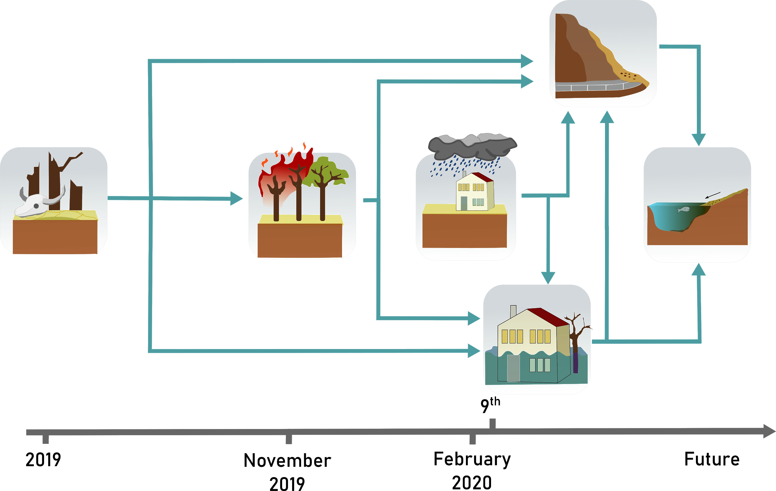 Publikation: Kemter et al. 2021, Cascading hazards in the aftermath of Australia’s 2019/2020 Black Summer wildfires, Earth’s Future, https://agupubs.onlinelibrary.wiley.com/doi/10.1029/2020EF001884